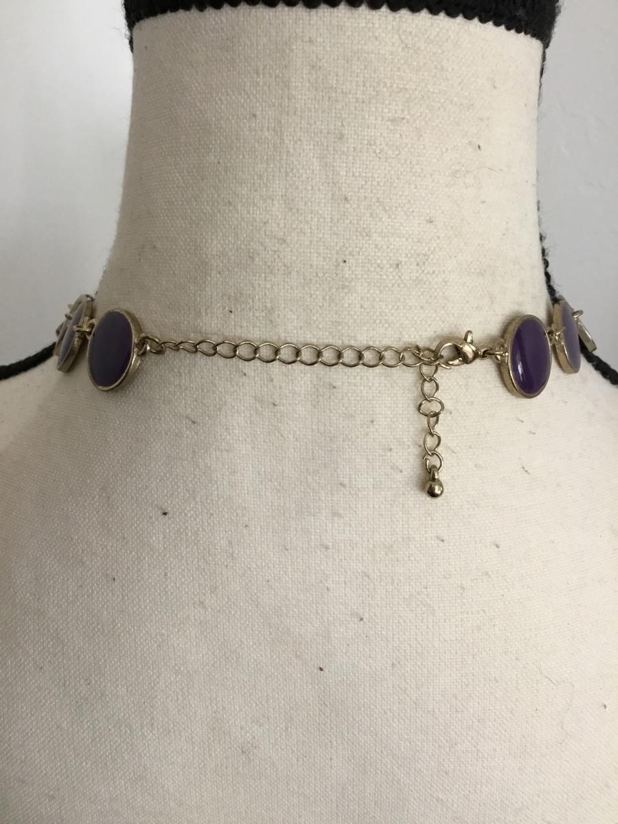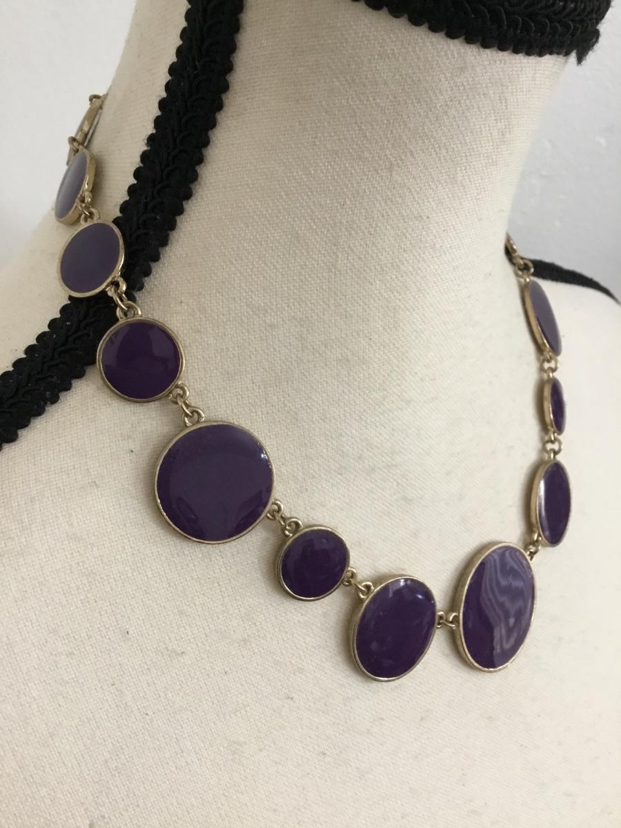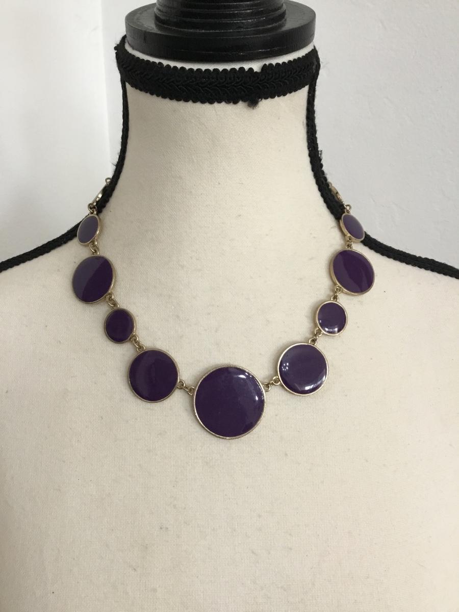 Vintage goldtone, purple enamel statement, necklace