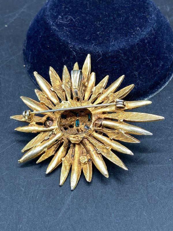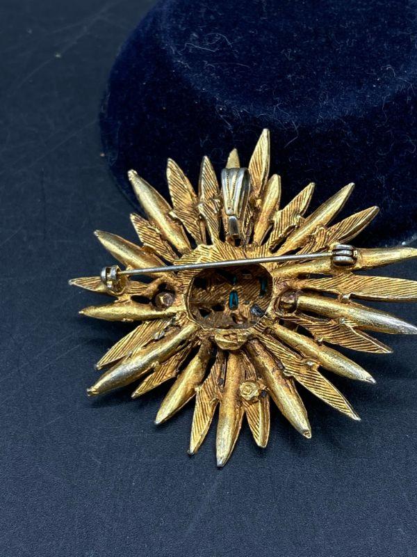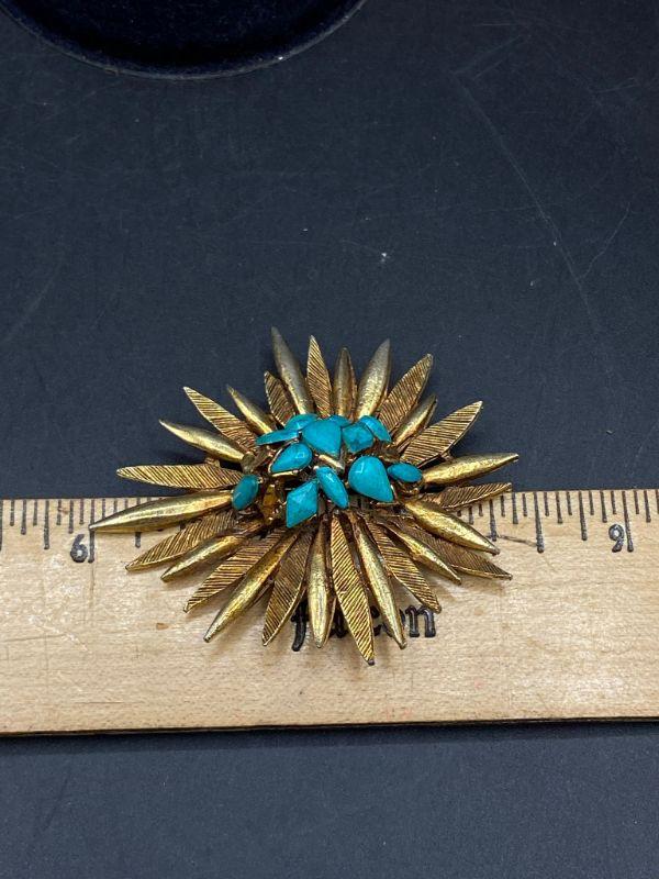 Vintage Goldtone Starburst Pin w/ Faux Turquoise Stones