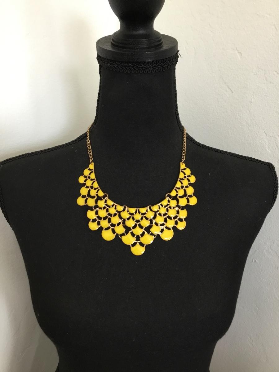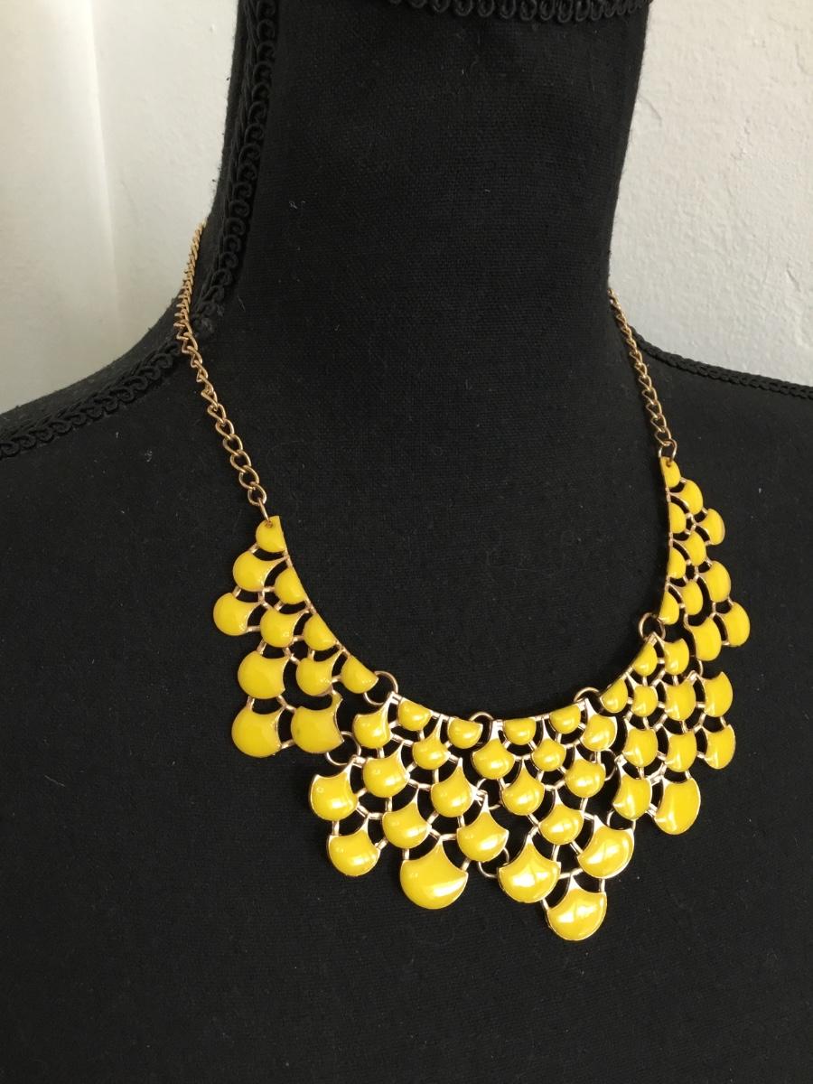 Vintage, goldtone, sunshine, yellow enamel statement, necklace