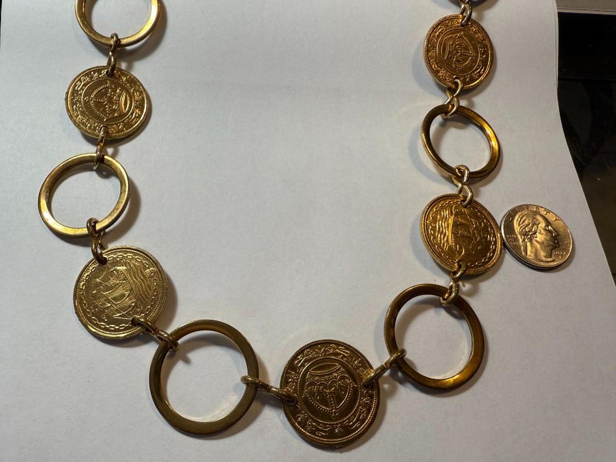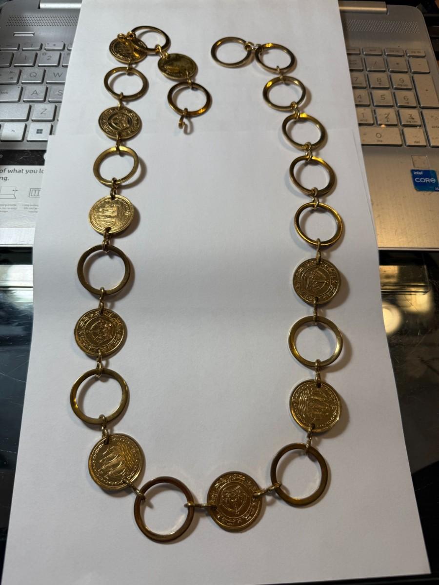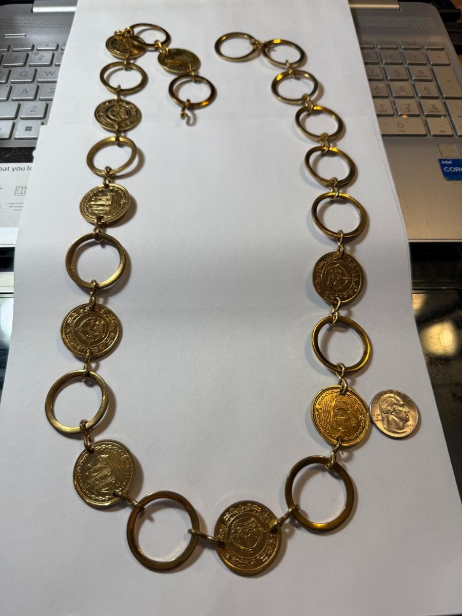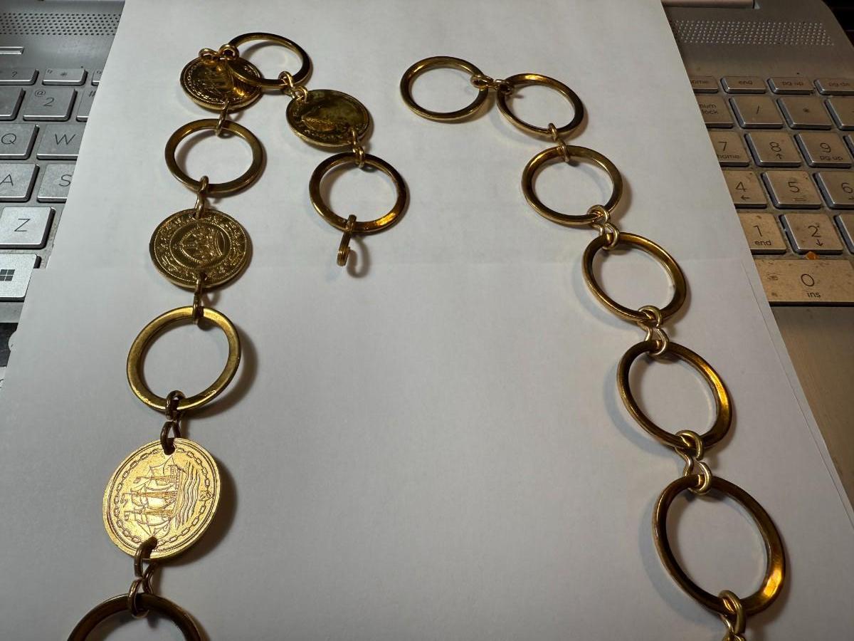 VINTAGE GOLD-TONED METAL FASHION BELT 36" LONG IN GOOD PREOWNED FROM AN ESTATE AS PICTURED.