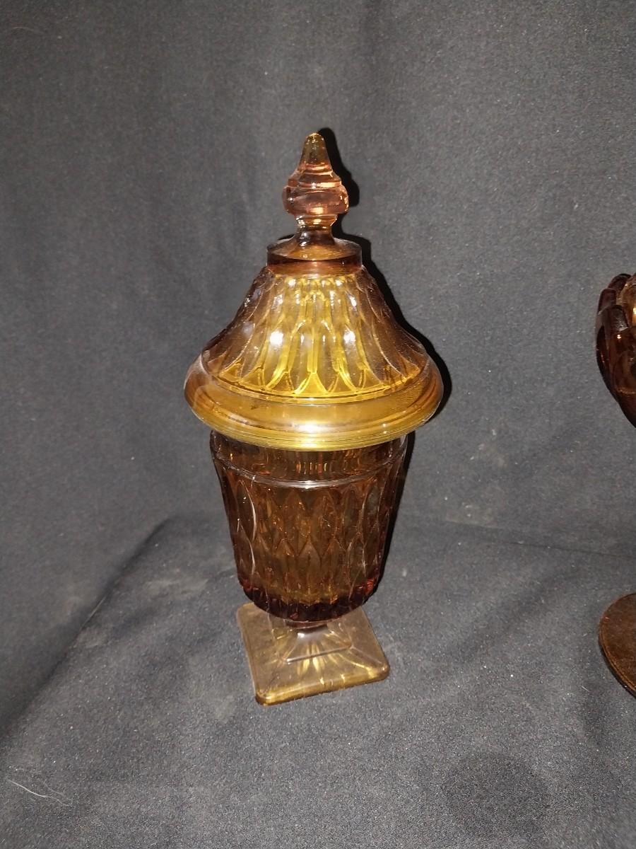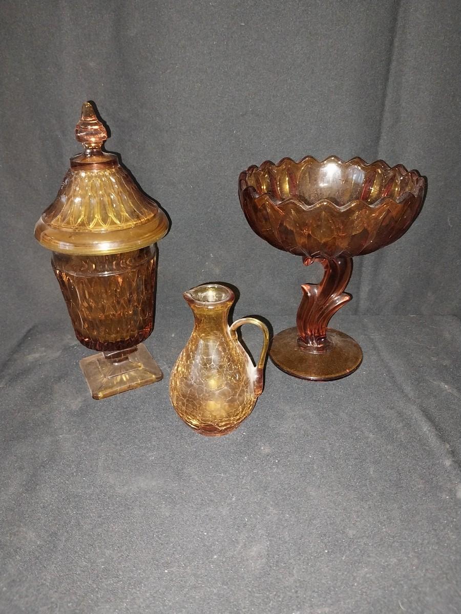VINTAGE GOLD/YELLOW GLASS CANDY DISH'S & BOTTLE