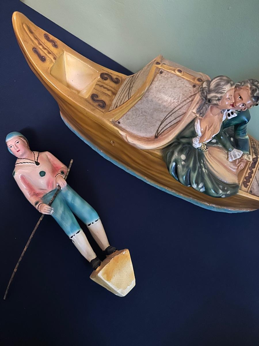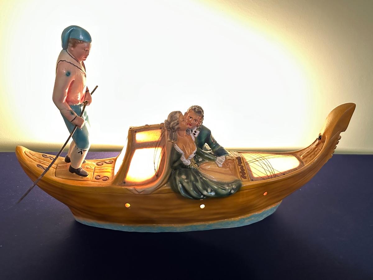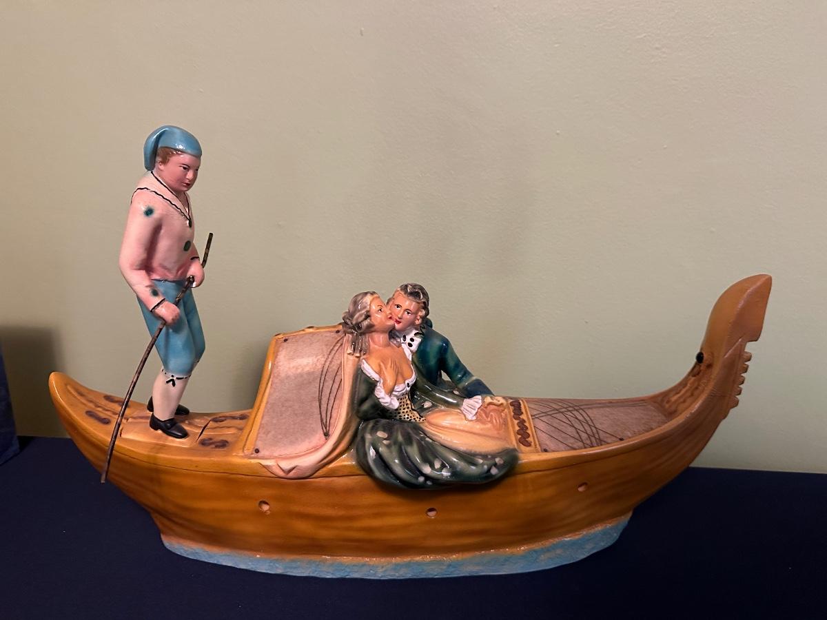 VINTAGE LOVERS IN GONDOLA LAMP WORKING SM CHIP AT BASE OF CAPTAINS FOOT SEE PICS 21" LONG