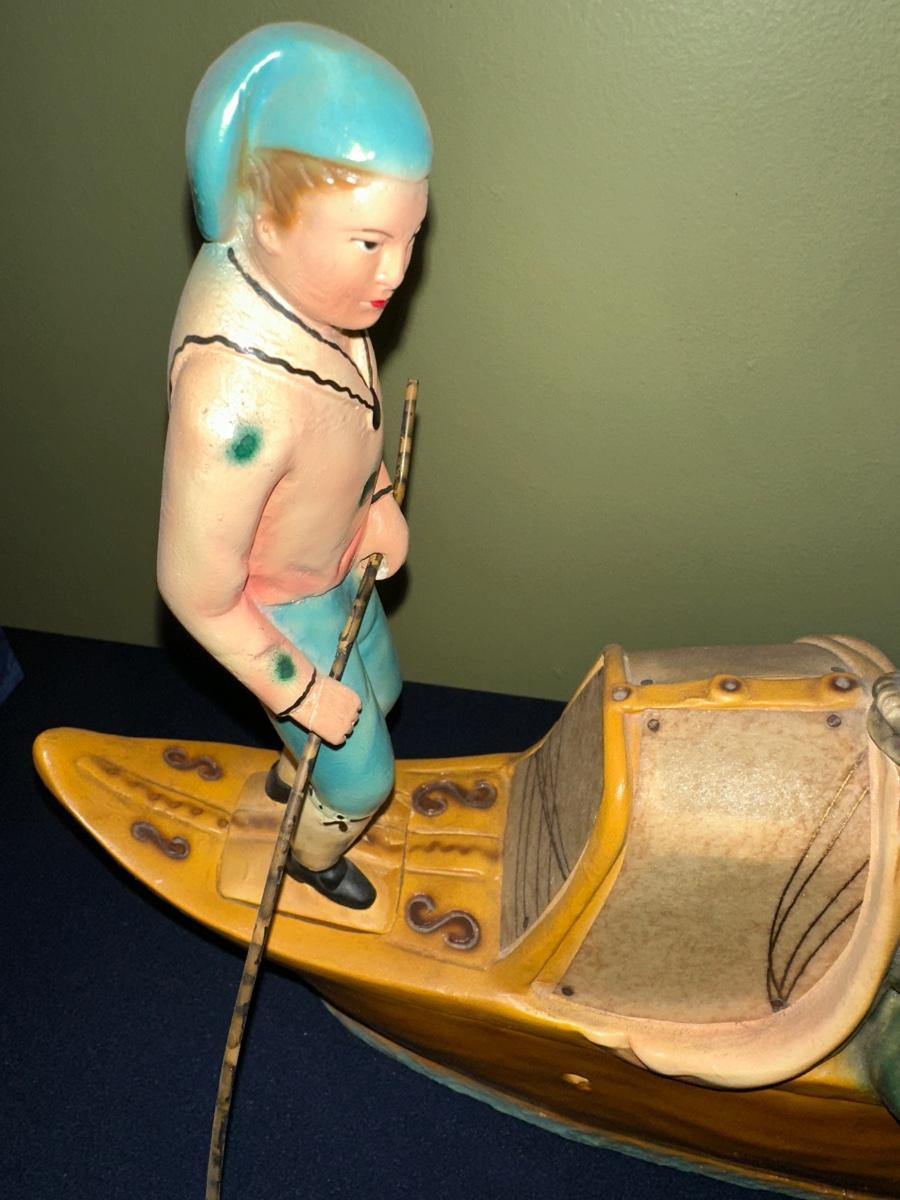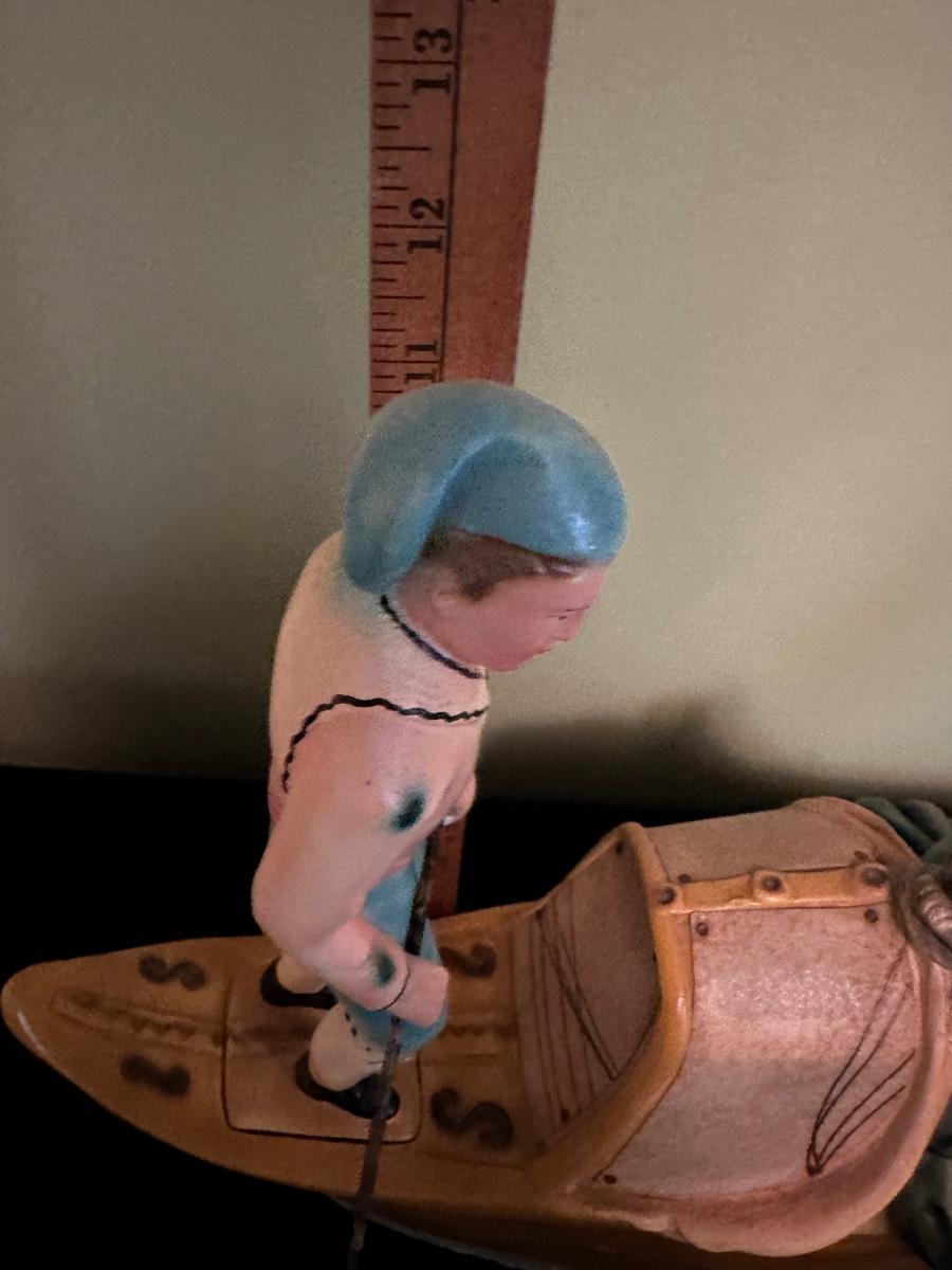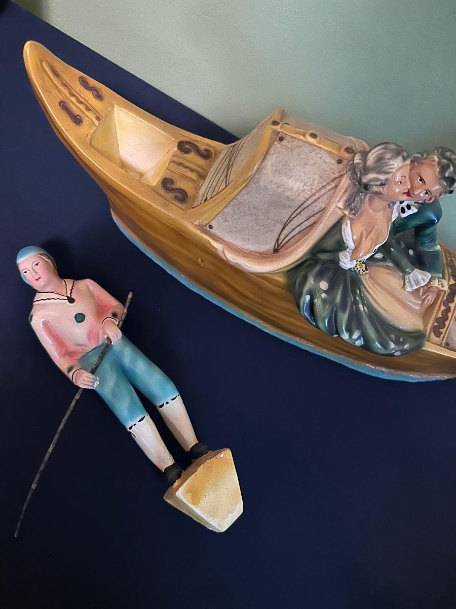 VINTAGE LOVERS IN GONDOLA LAMP WORKING SM CHIP AT BASE OF CAPTAINS FOOT SEE PICS 21" LONG