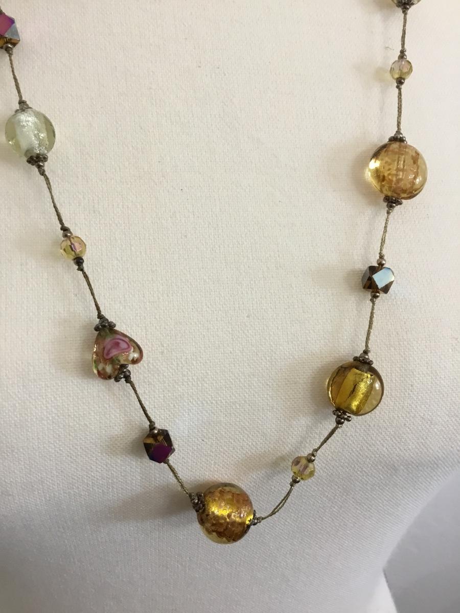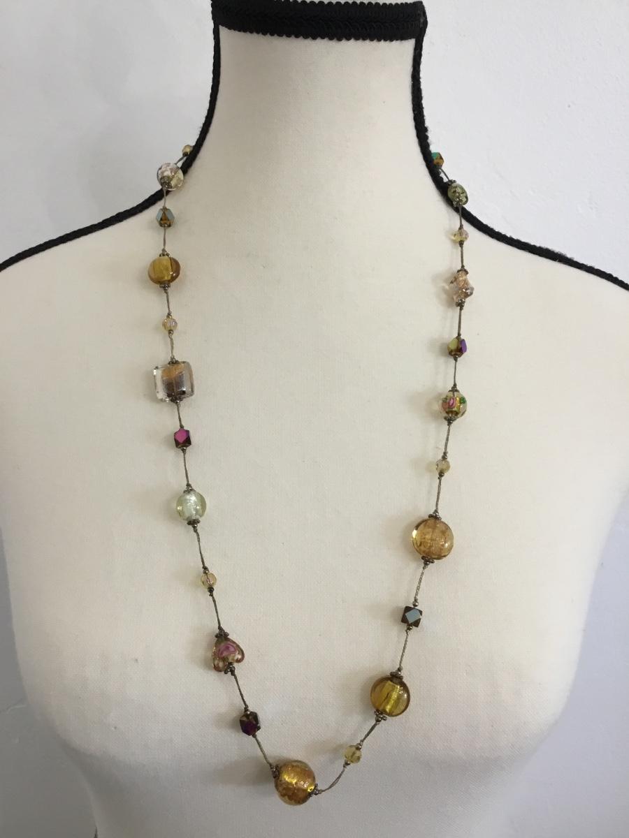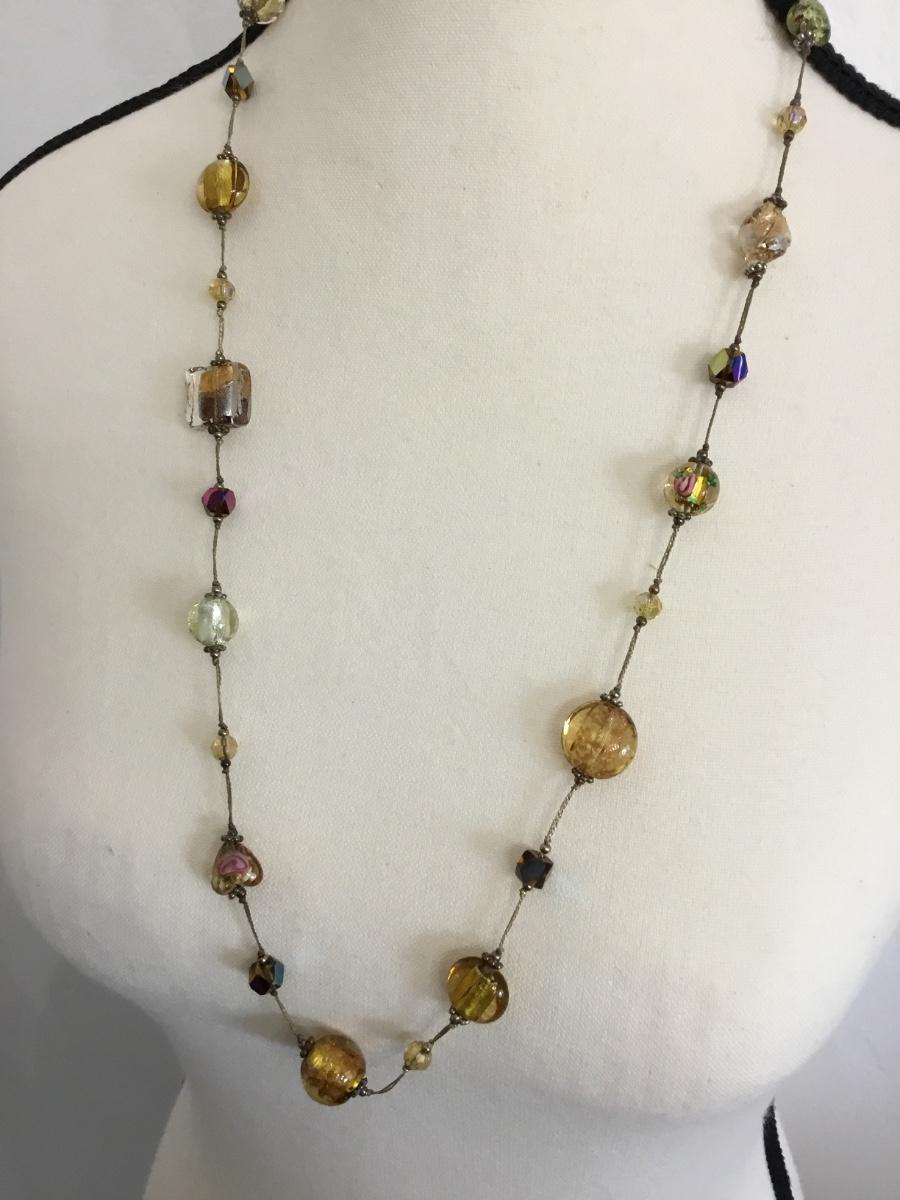 Vintage Gorgeous, gold tone and glass and crystal bead necklace