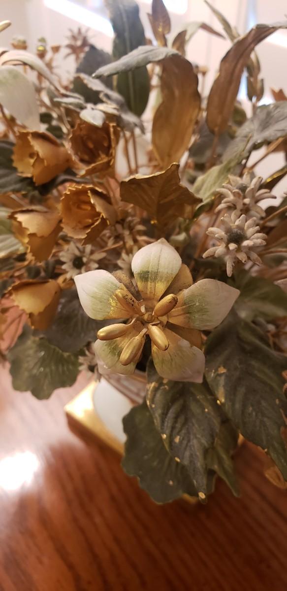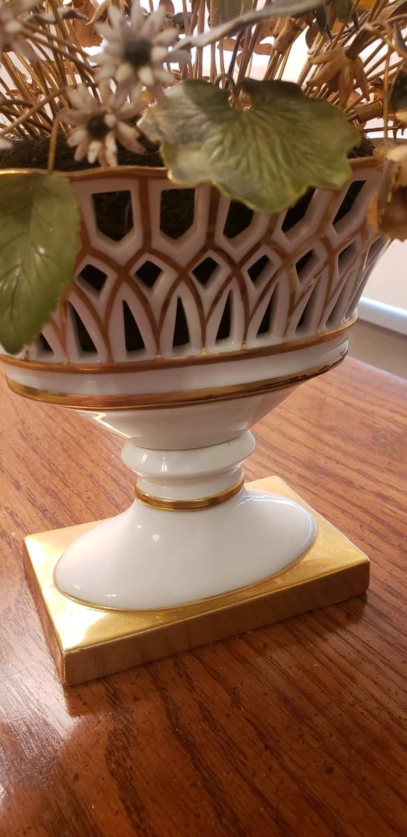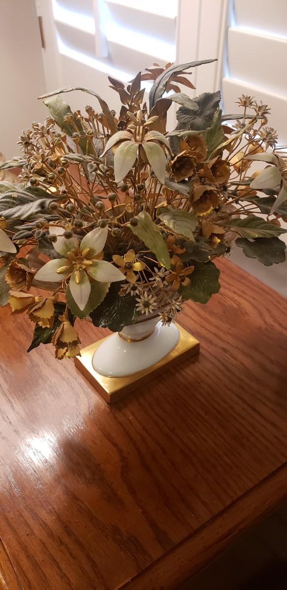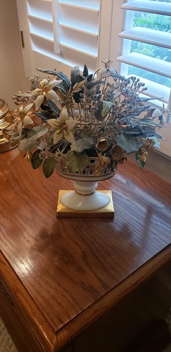Vintage Gorham porcelain enameled metal flower basket #6737 Jane Hutcheson