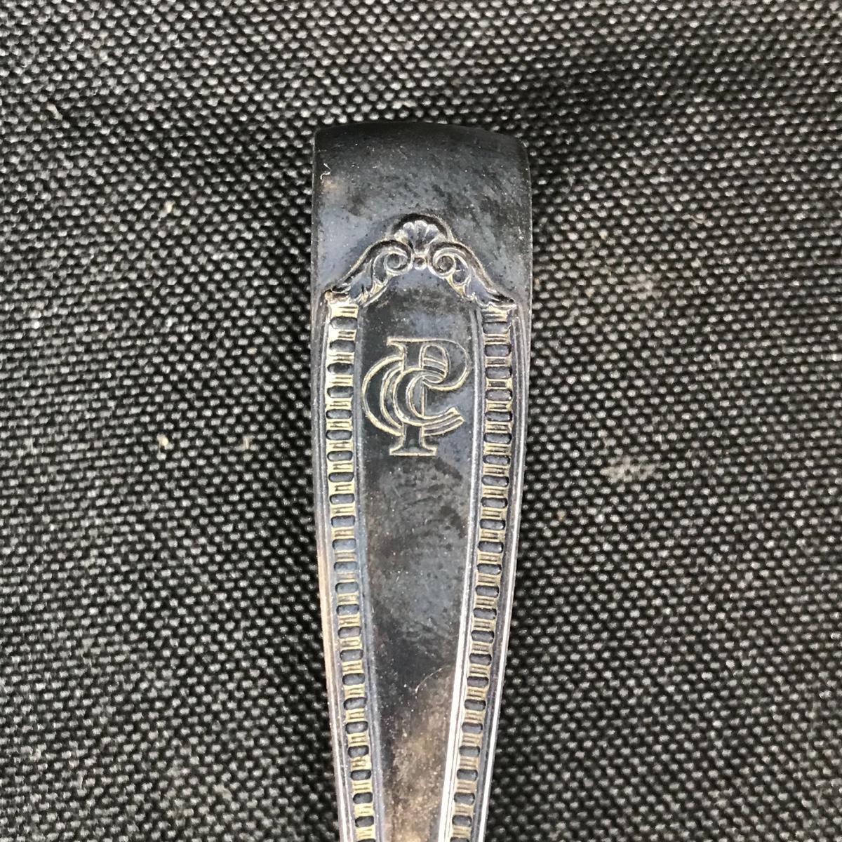Has the initials, “PCC“ on the top of the handle has some tarnishing; see pictures.