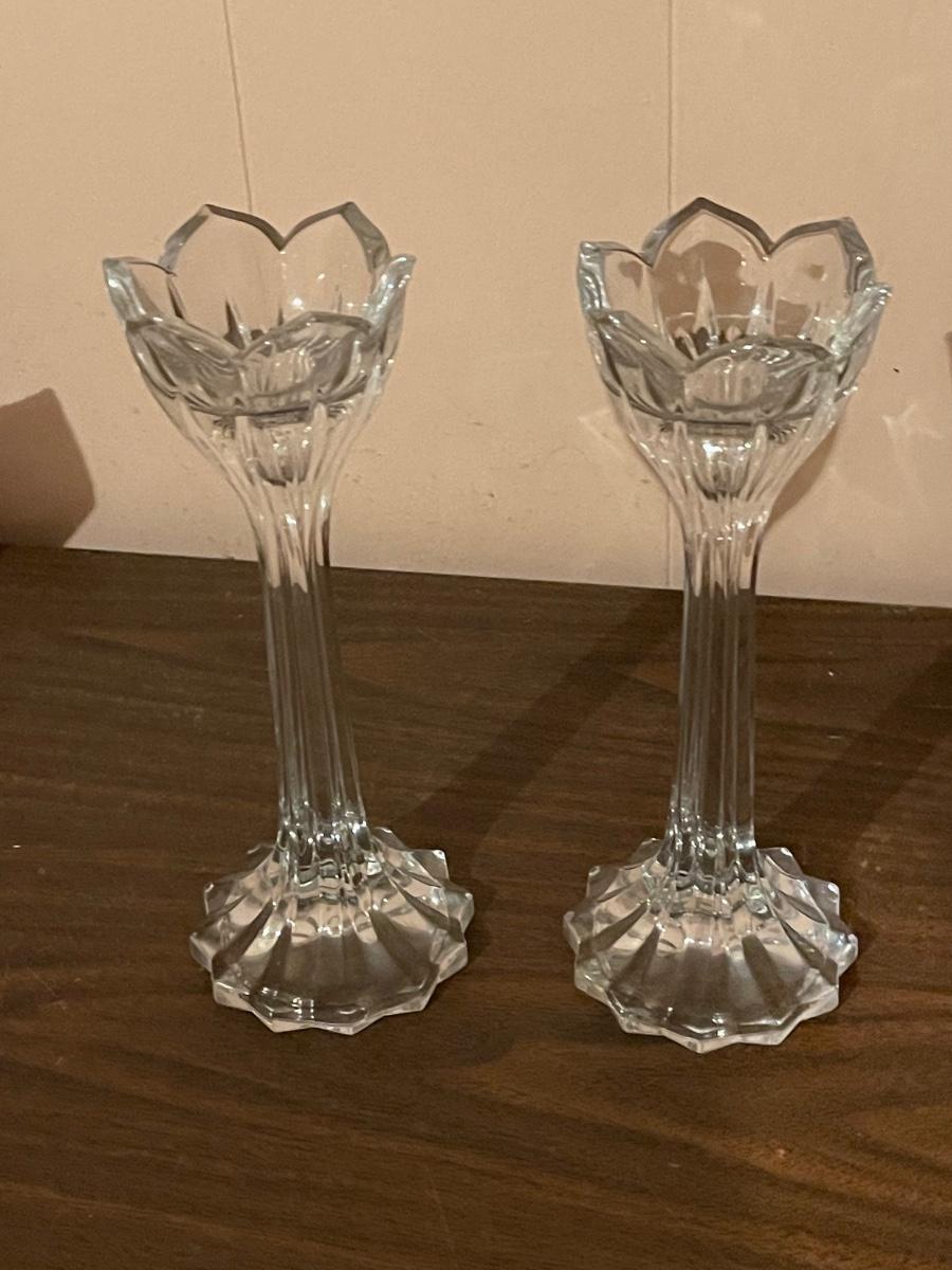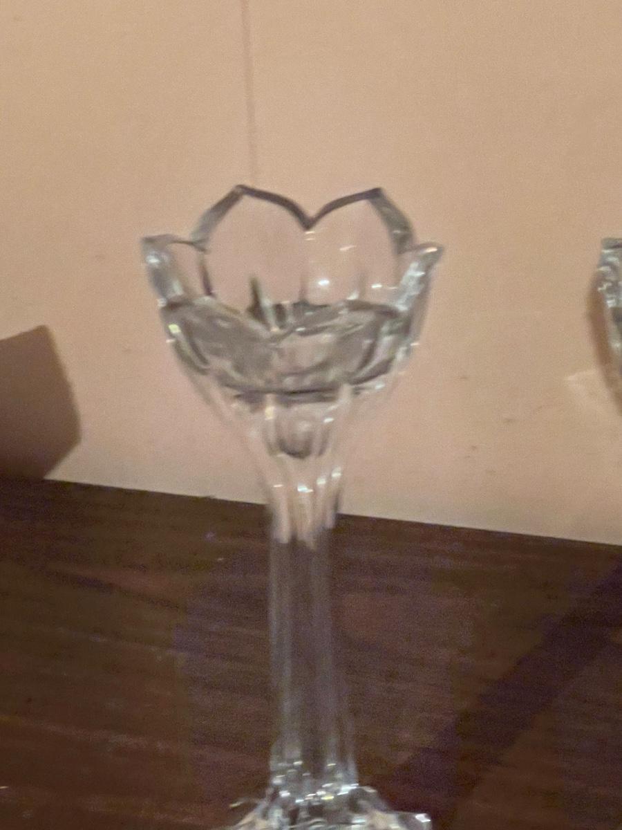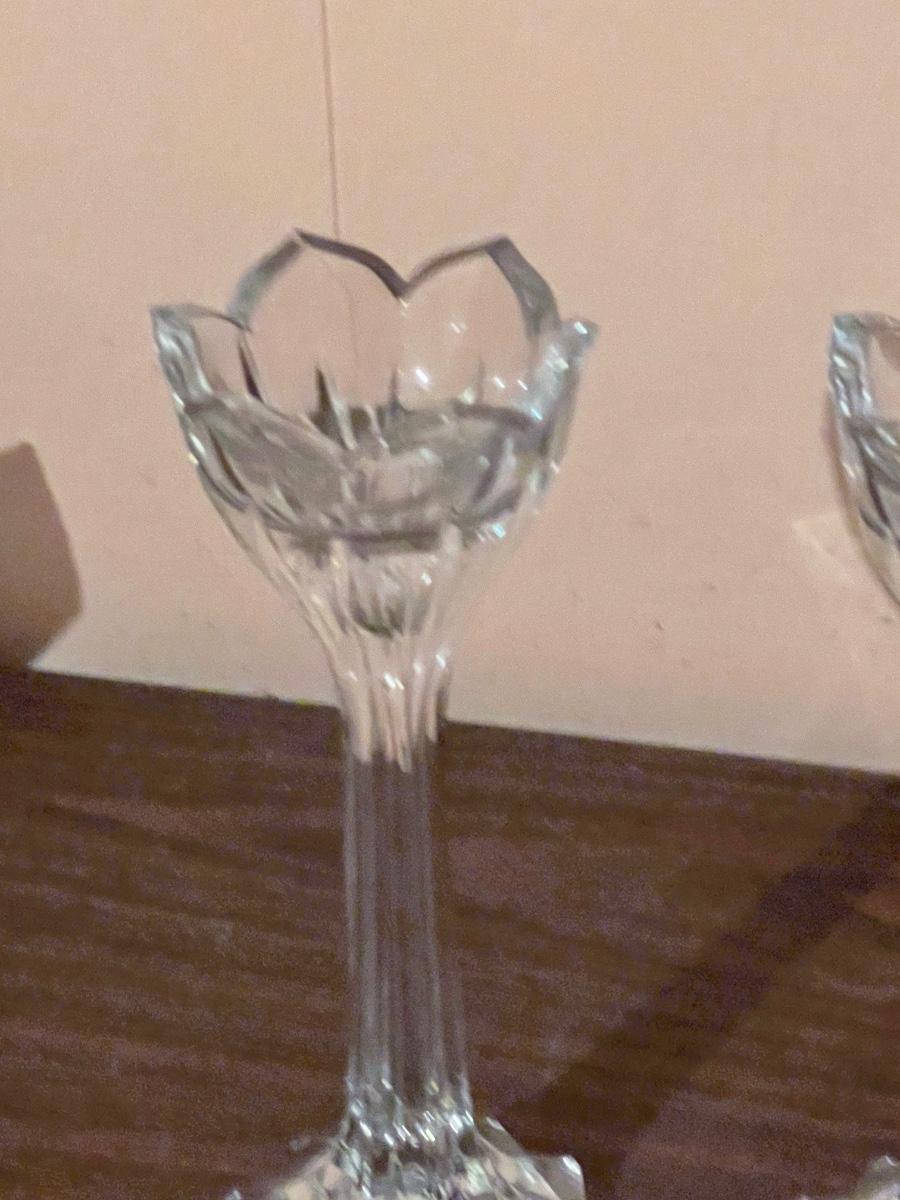 Vintage Gorham Lotus Tulip Shaped Vertical Cut Crystal Candlesticks