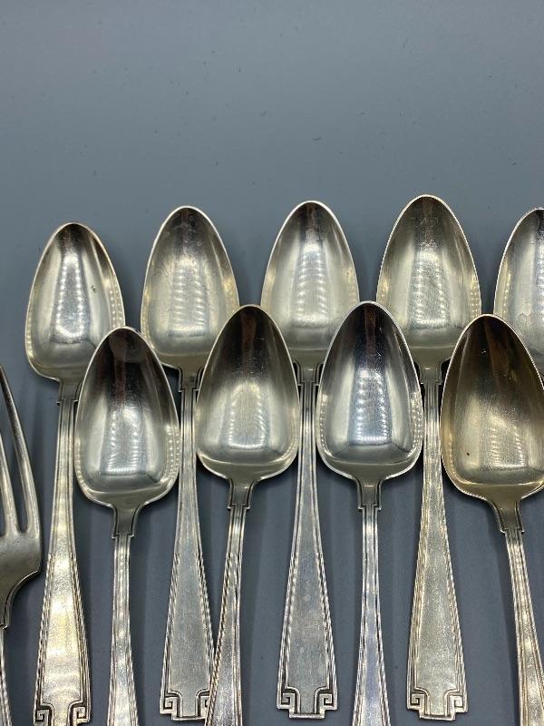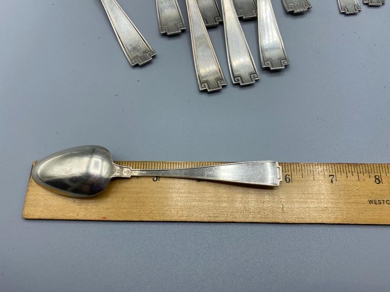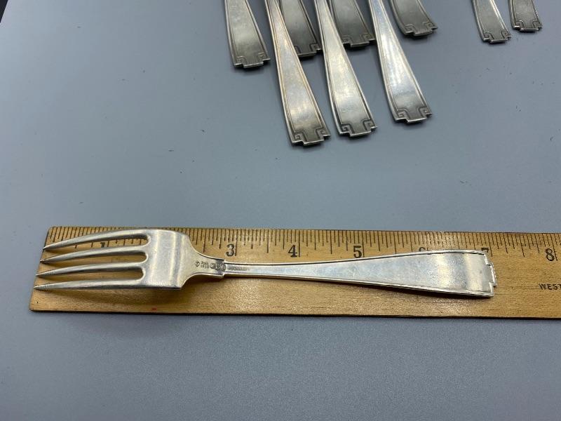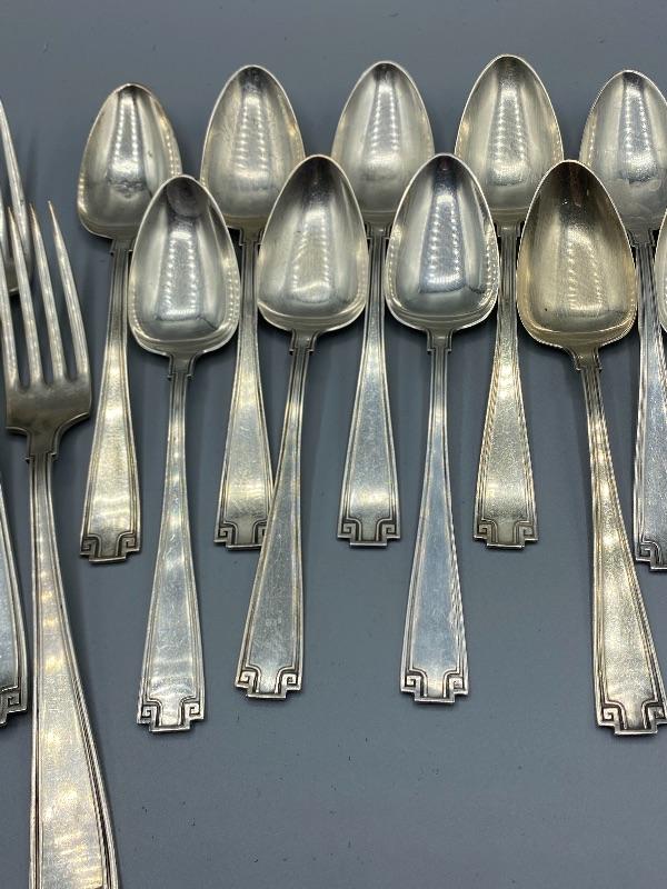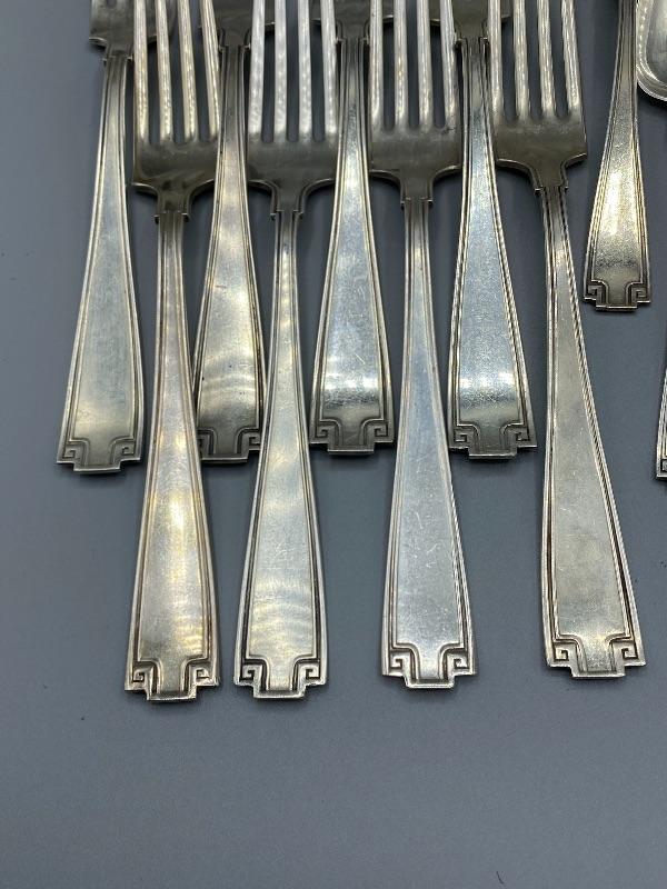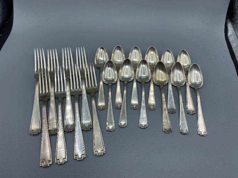 Vintage Gorham sterling silver Etruscan flatware. 8 dinner forks and 12 teaspoons. Good previously owned condition. Total weight is 622g. See photos.