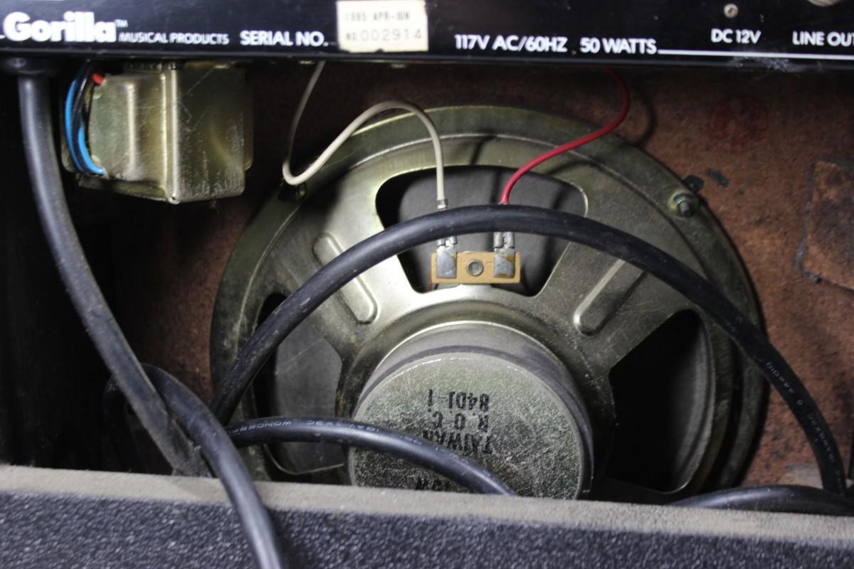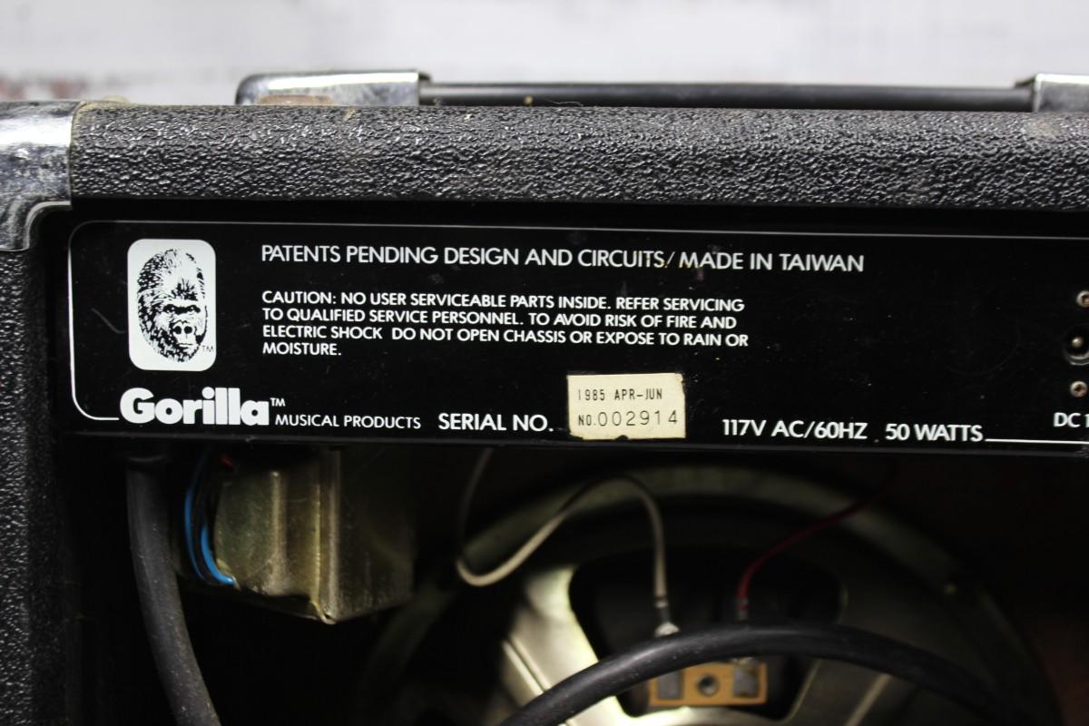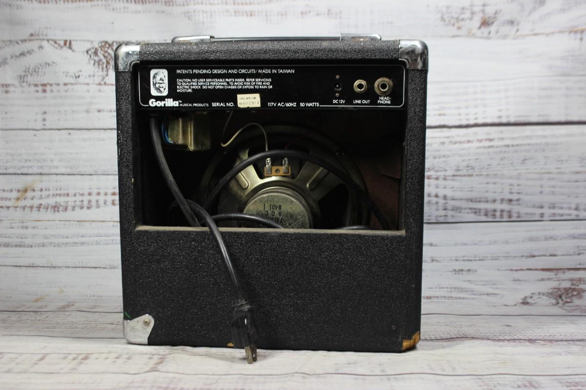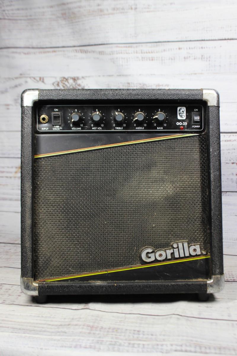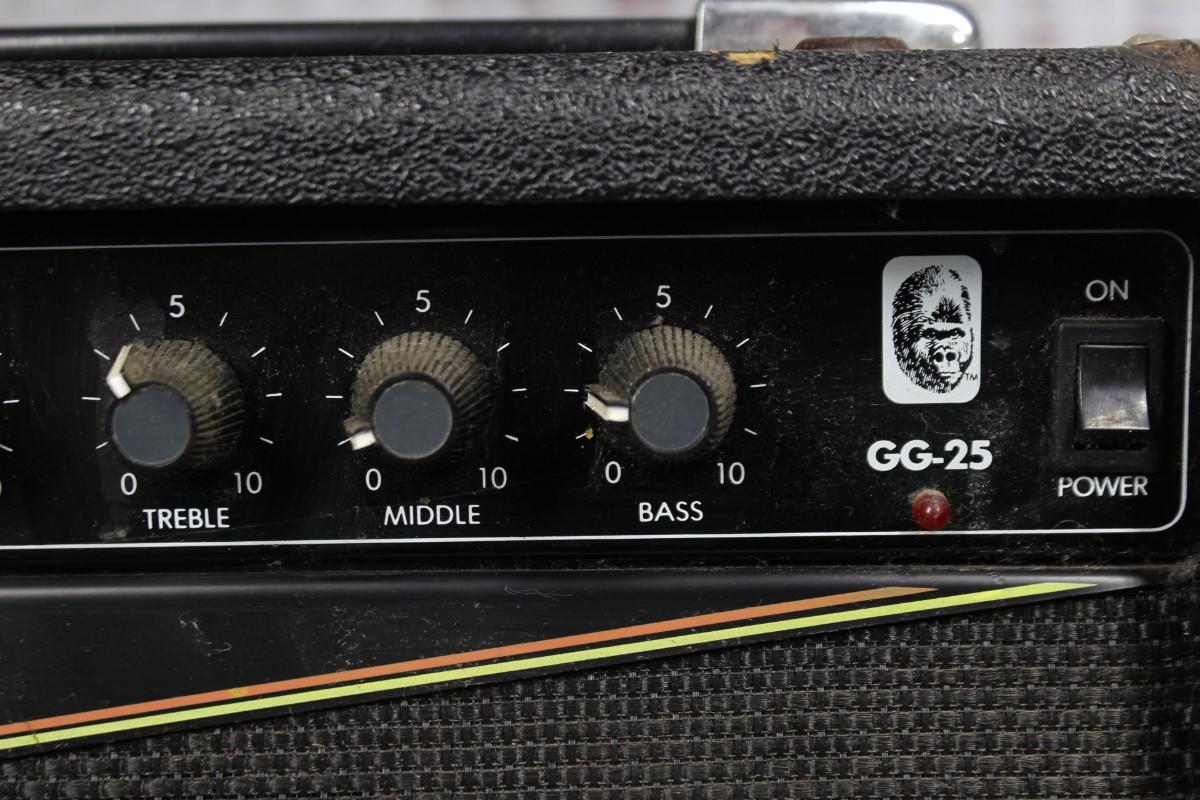 Vintage Gorilla GG-25 Combo Practice Guitar Amplifier, there is a chipped corner, but there is no significant damage to the amplifier and is in overall fair condition. Powers on when plugged in, but there is loud static hum that comes from the speaker. Check pictures for more details and for sizing.