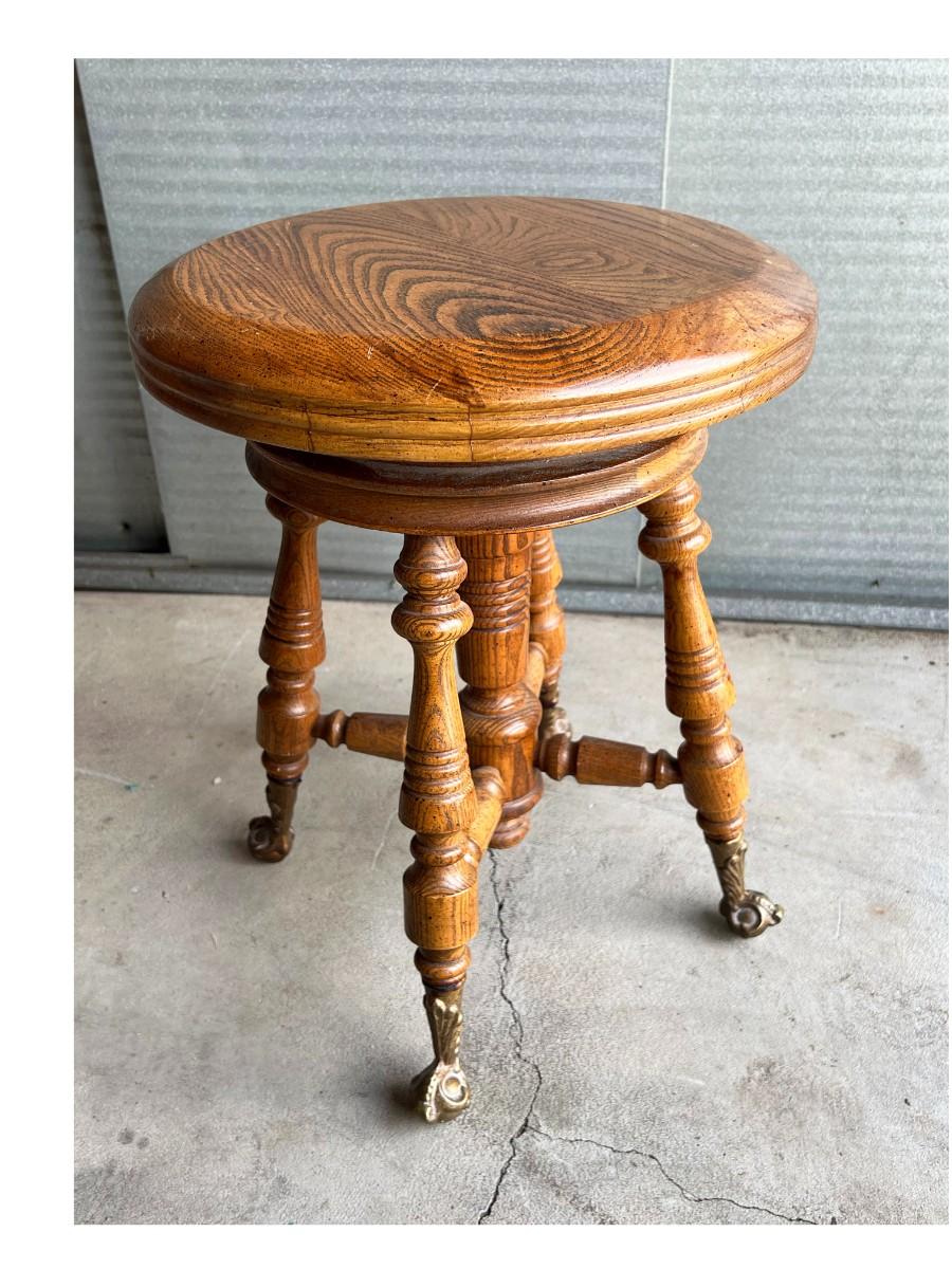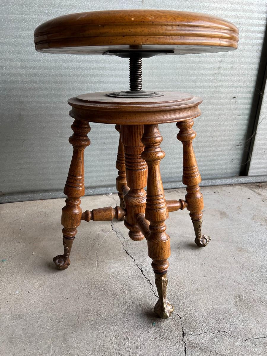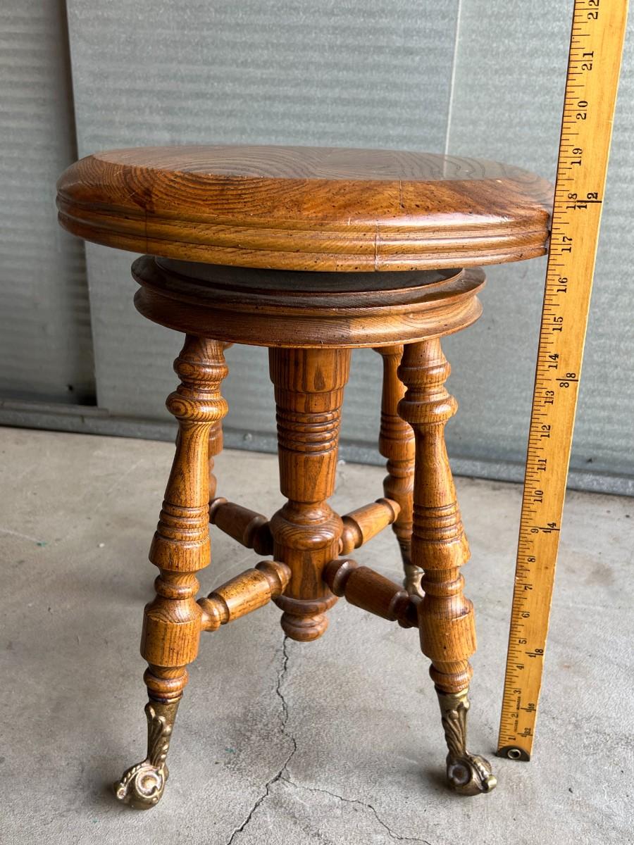 Vintage Gothic Victorian Adjustable Piano Swivel Stool with Cast Iron Feet