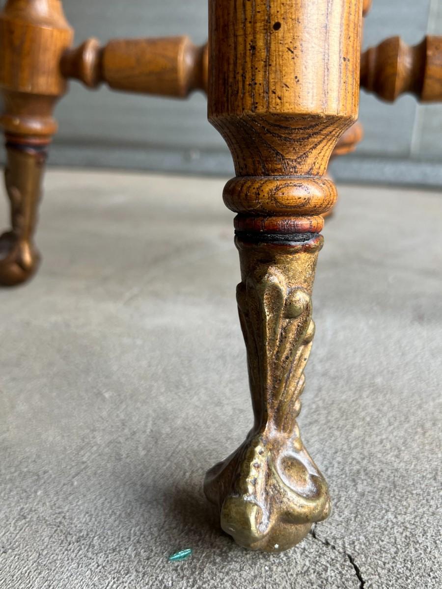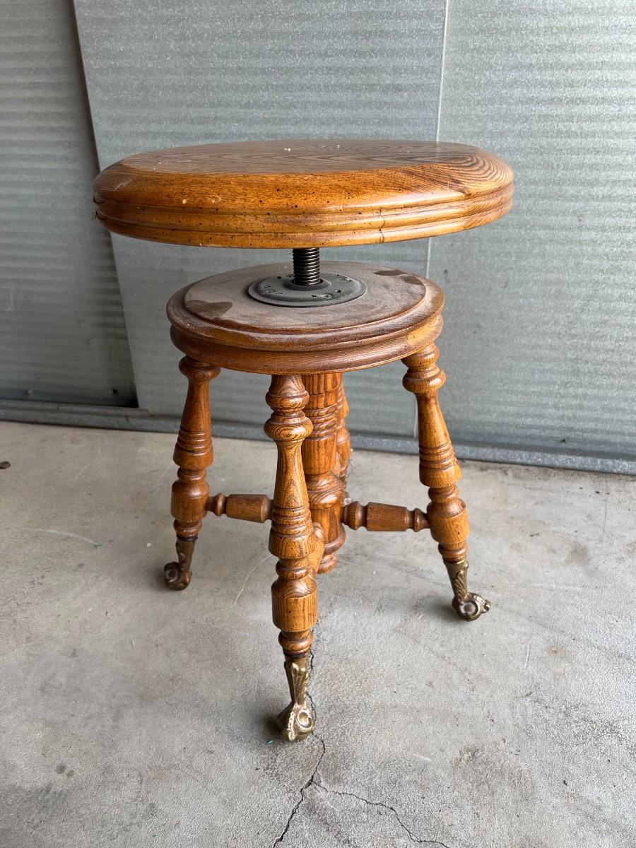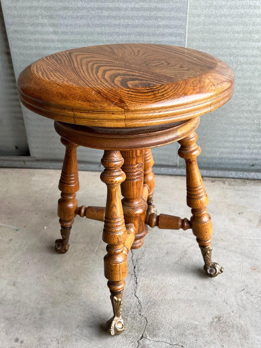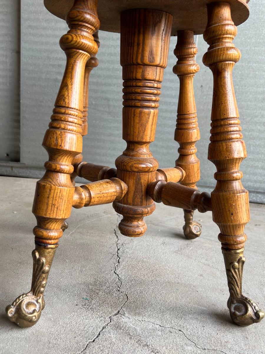 Vintage Gothic Victorian Adjustable Piano Swivel Stool with Cast Iron Feet