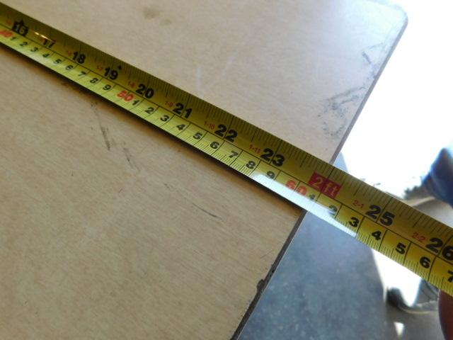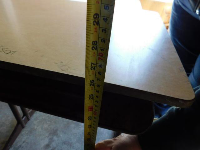Vintage Grade School Metal Frame Student Desk with Laminate Top 18"x24"26" has some wear to paint and carve marks on surface. Nostalgic!