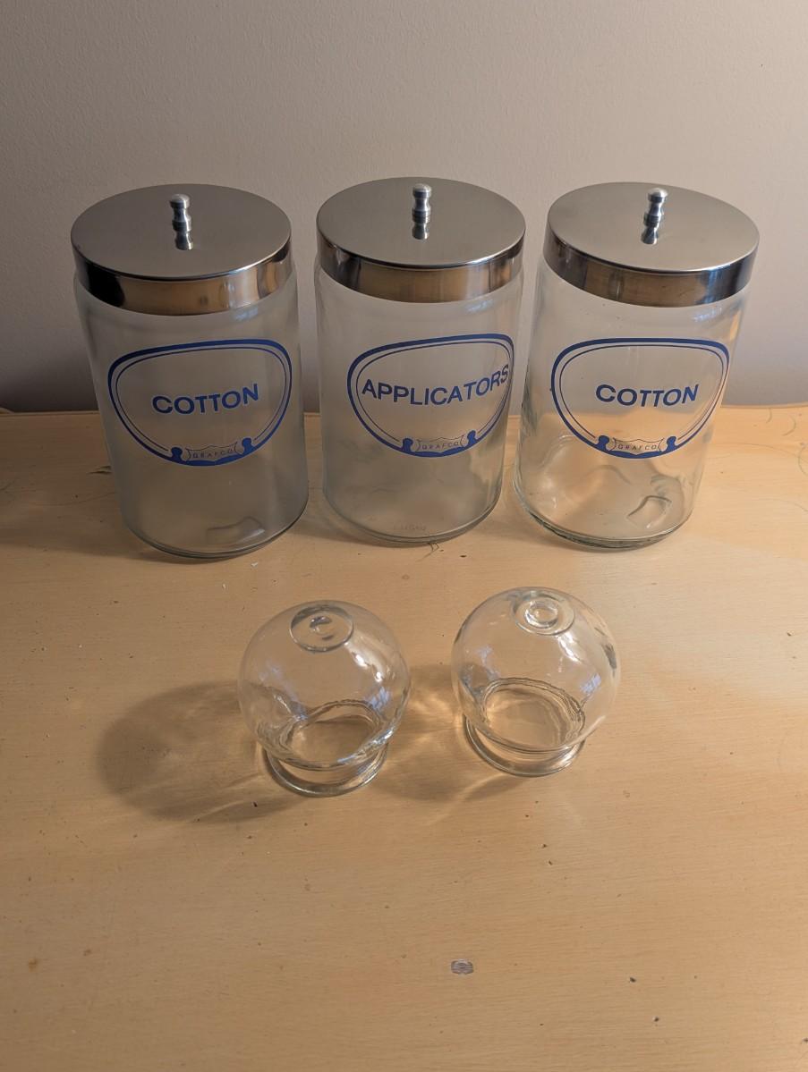 Vintage Grafcos Apothecary Medical Jars With Lid 8 1/2" Tall & Cupping Jars