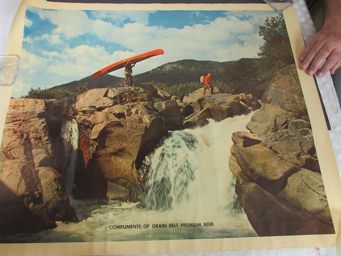 Vintage 1950s Grain Belt Advertising Print on Canvas, Man With Canoe