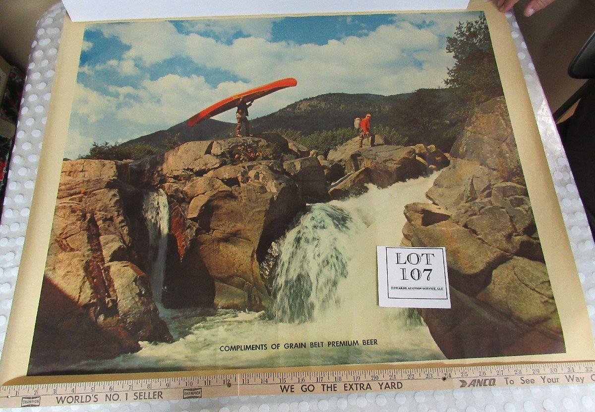 Vintage Grain Belt Beer Large Canvas Print, Man with Canoe, 26x33