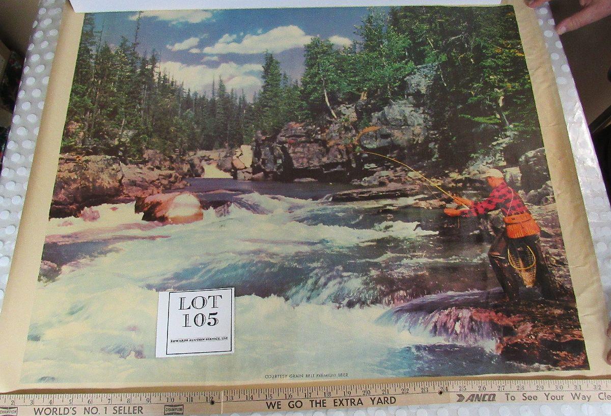 Vintage Grain Belt Beer Large Print on Canvas, 26"x33", Fishing