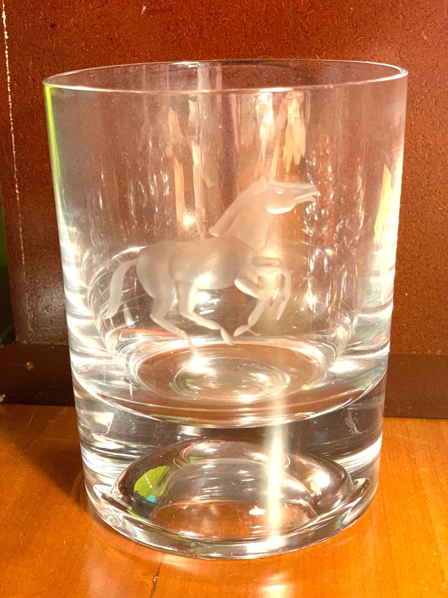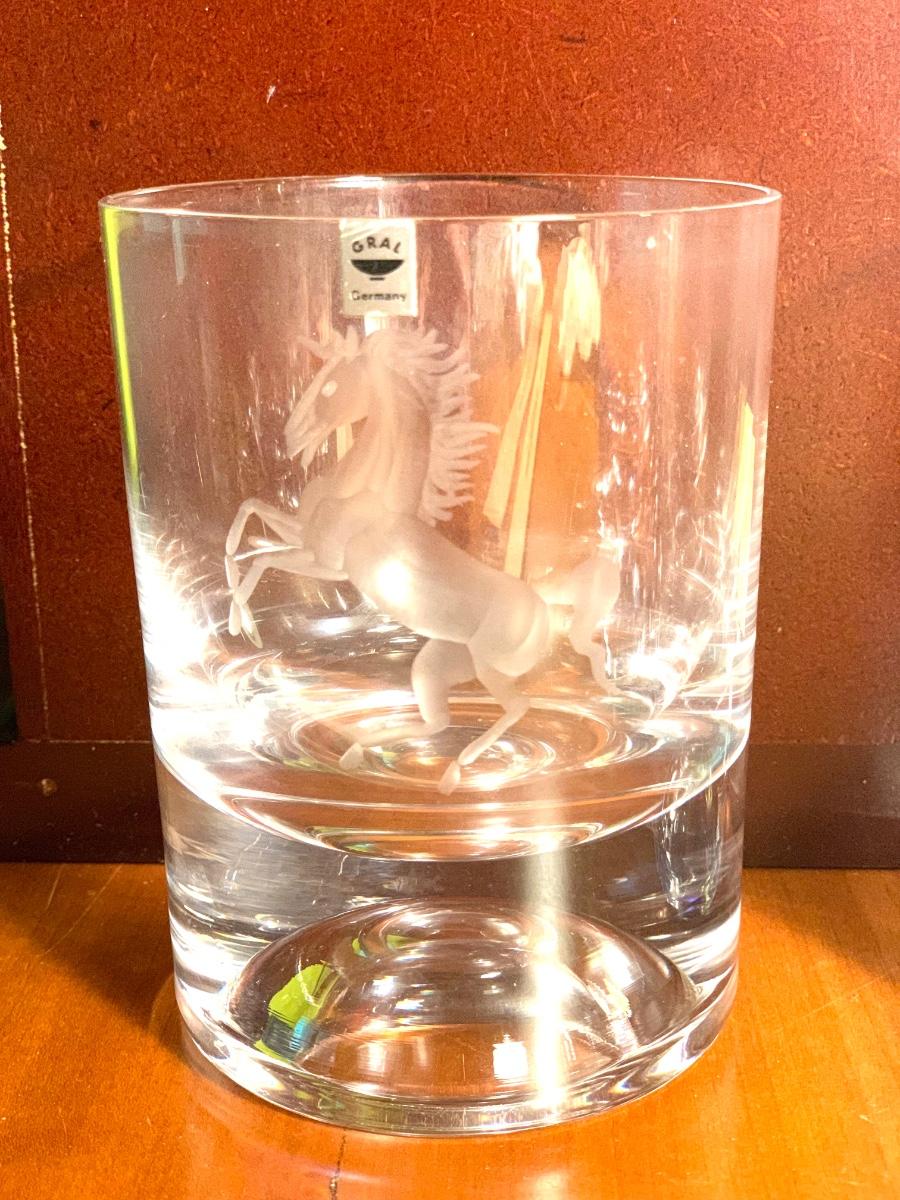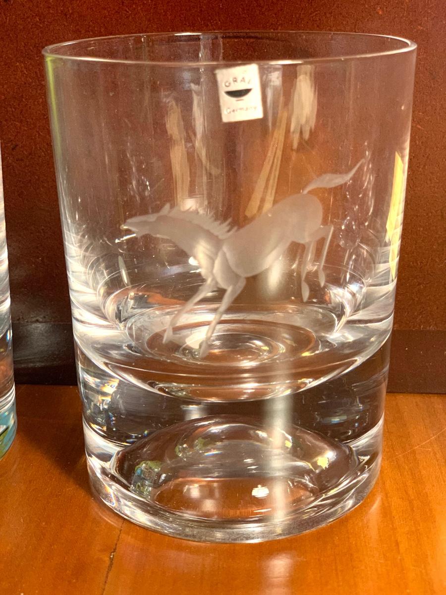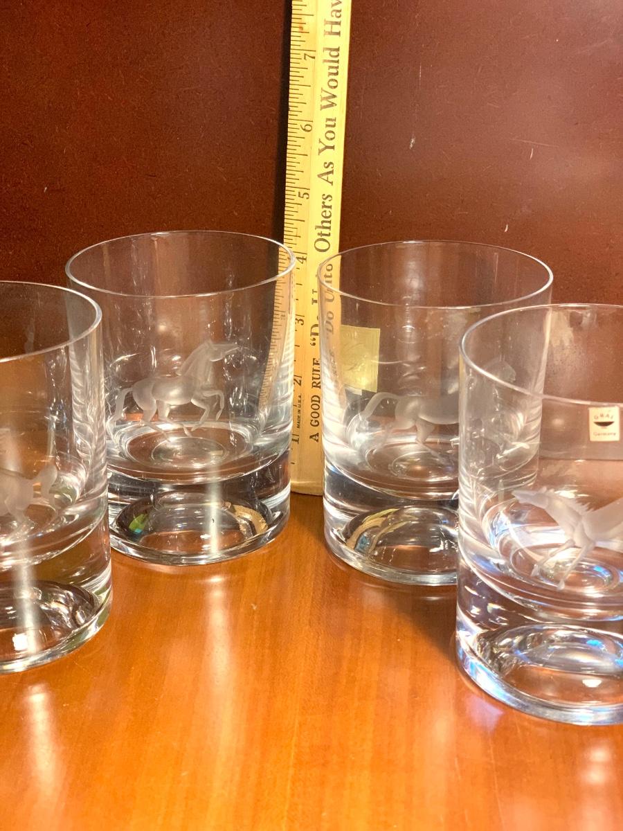 Vintage “GRAL Germany” Crystal Etched Horse Design Whiskey Highball Cocktail Glasses