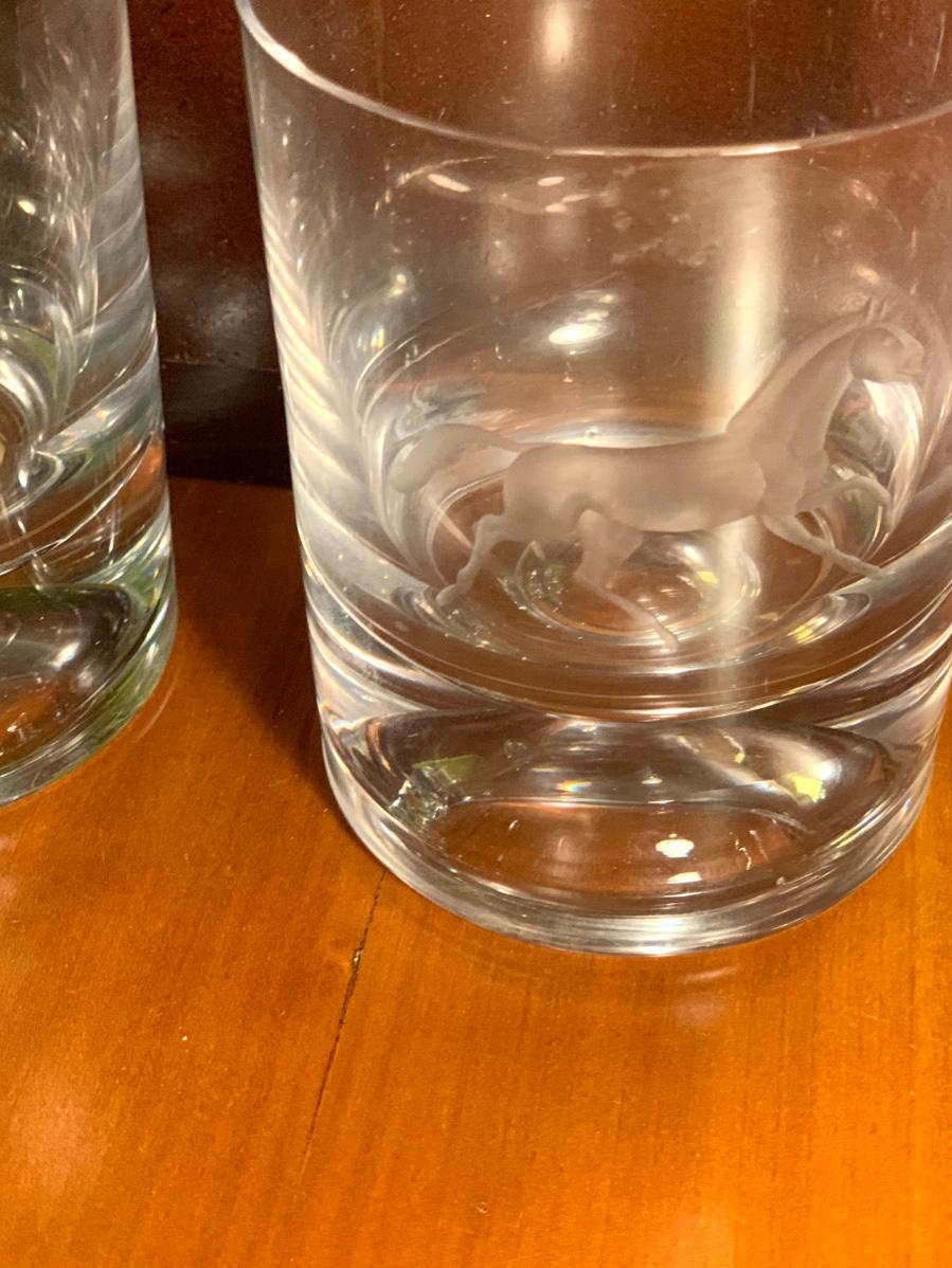 GRAL cocktail glasses set of 4, see pictures for details, heavy base, with etched horse design.