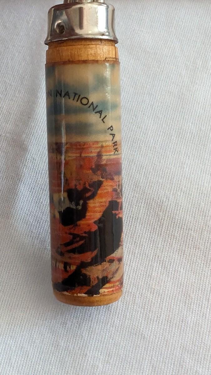 This is a vintage Grand Canyon National Parks souvenir bottle opener and corkscrew.