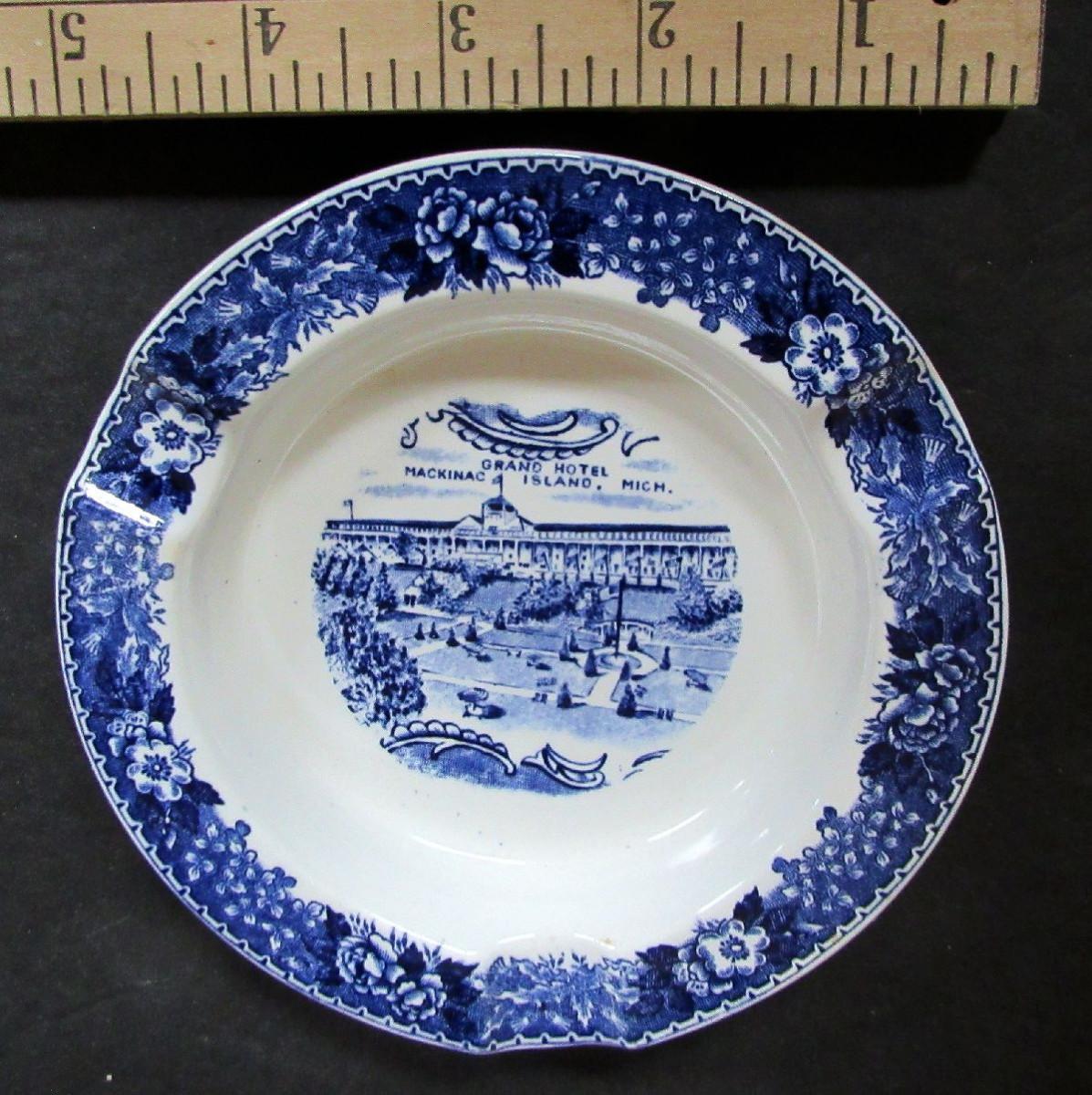 Vintage Grand Hotel On Mackinac Island Souvenir Ashtray, Old Staffordshire Ware, Jonroth, England