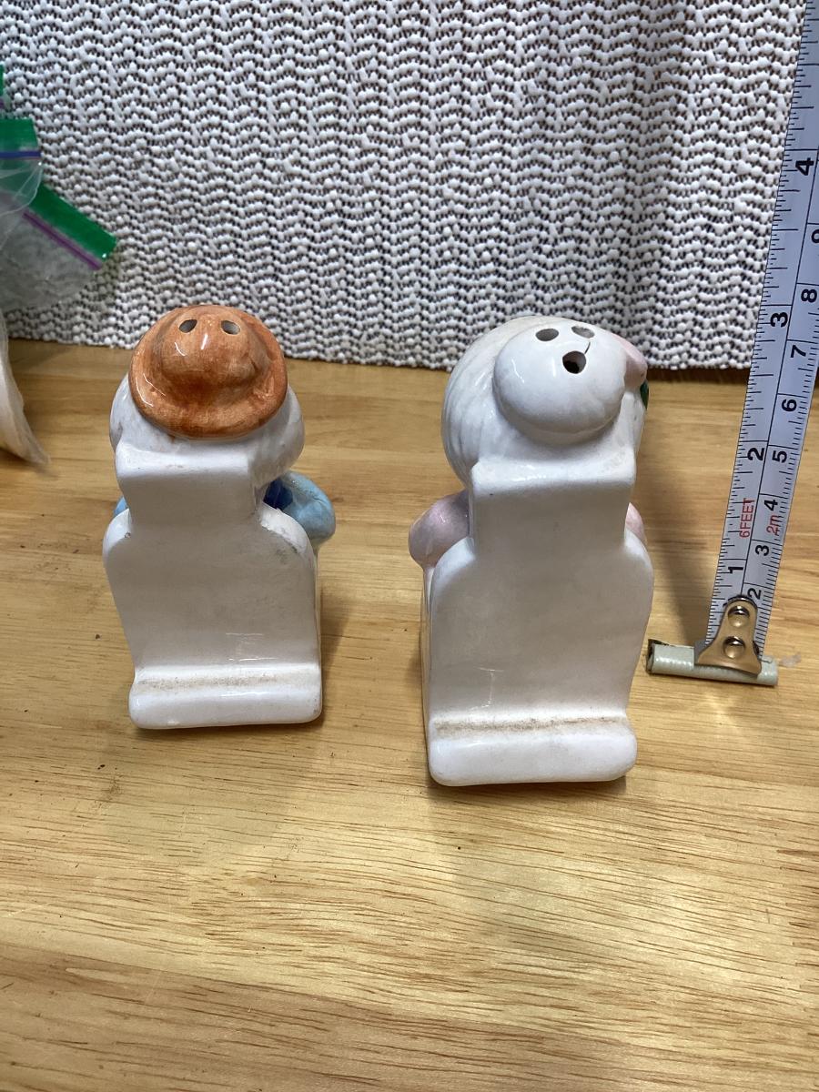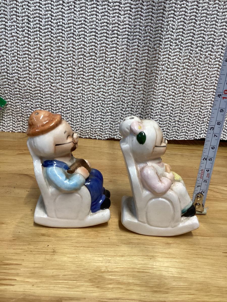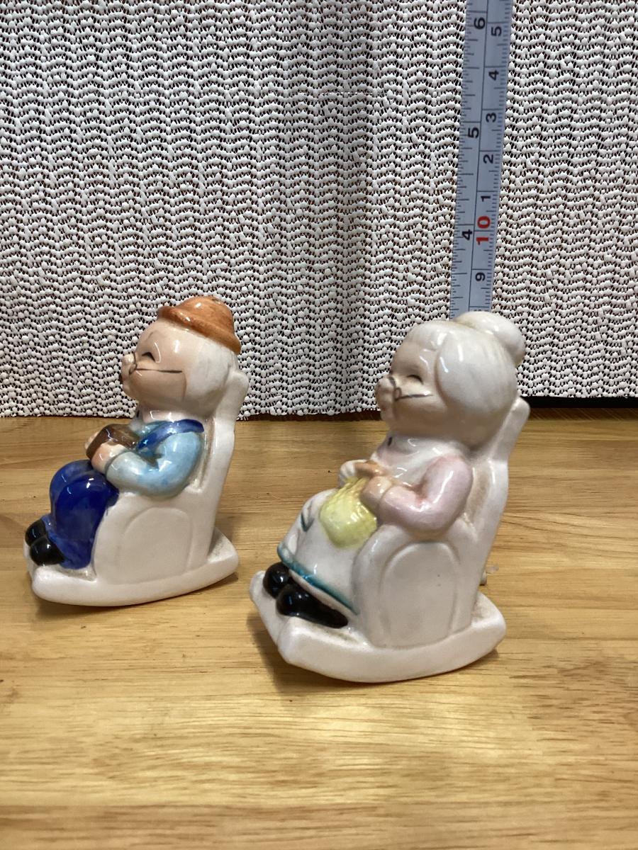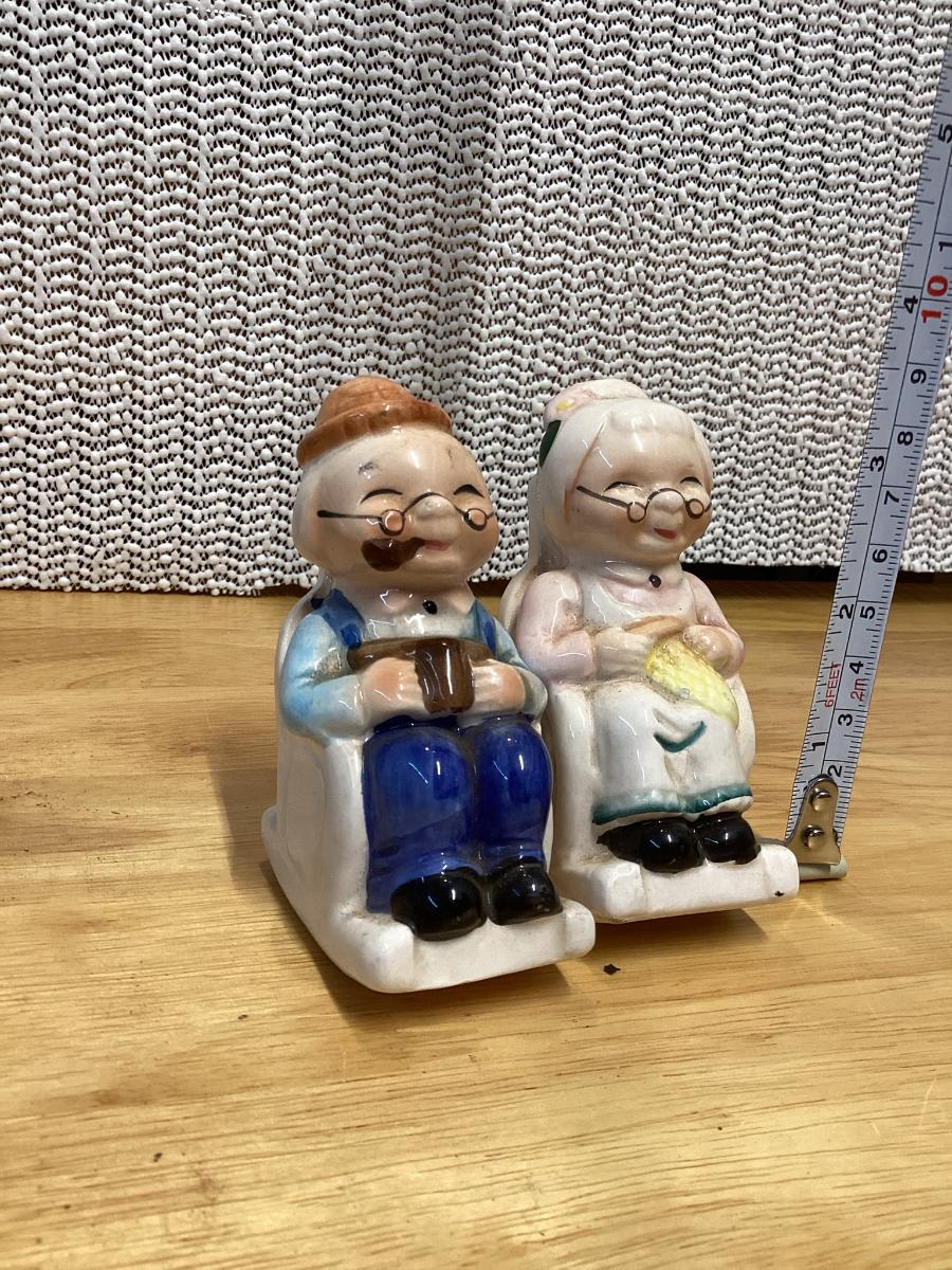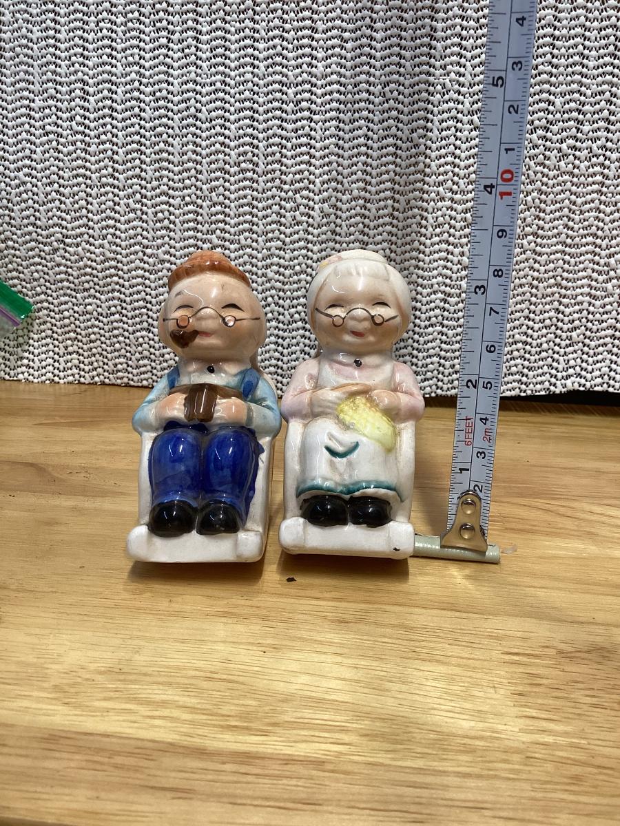 Vintage grandma and grandpa couple seated in rocking chairs salt and pepper shakers