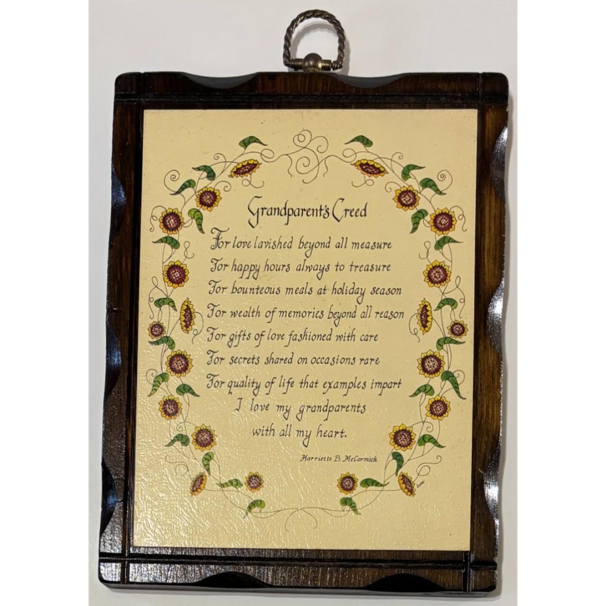 Vintage Grandparents' Creed Wood Plaque Wooden Wall Decor Sunflowers Floral