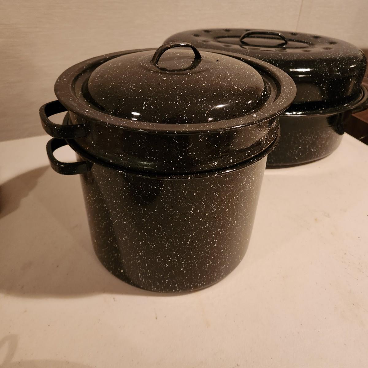 Vintage Granite Ware Roasting pan & Pot Steamer