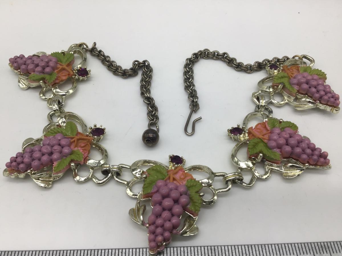 Vintage Grape Cluster Purple Rhinestone Necklace