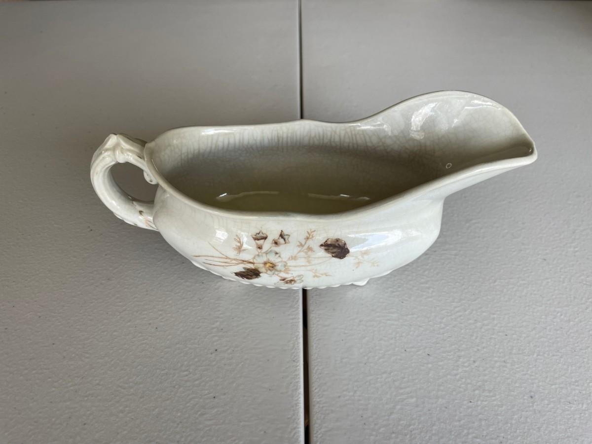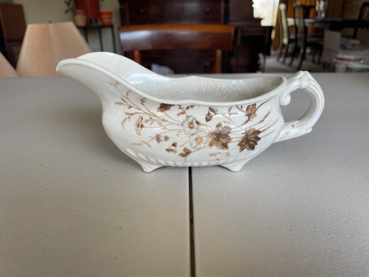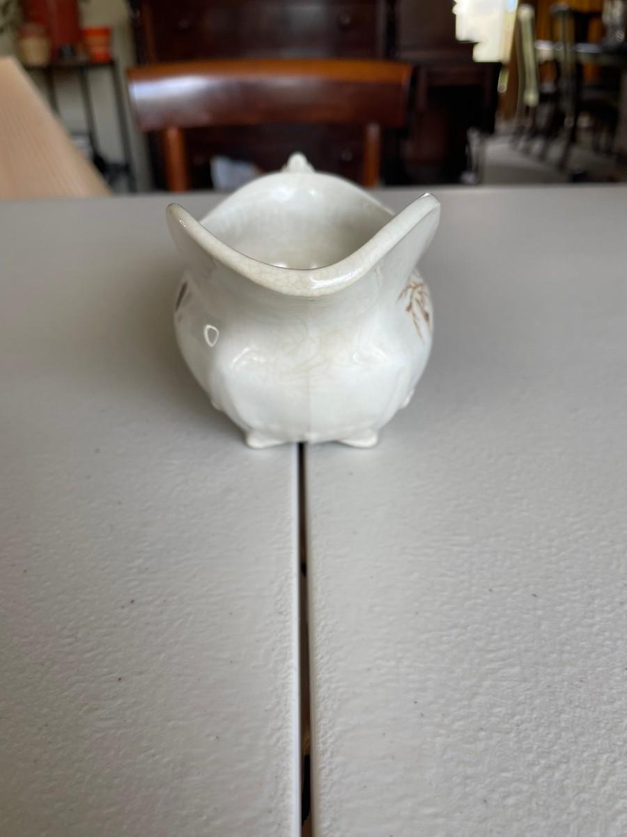 Brown and White. Transferware. 8 1/2 x 3 1/2 x 3 1/2