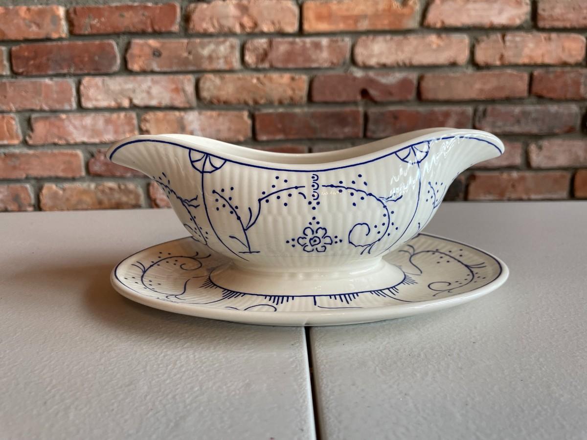 Vintage gravy boat in great condition. One piece. 8 1/2L x 6W x 3 1/2H.