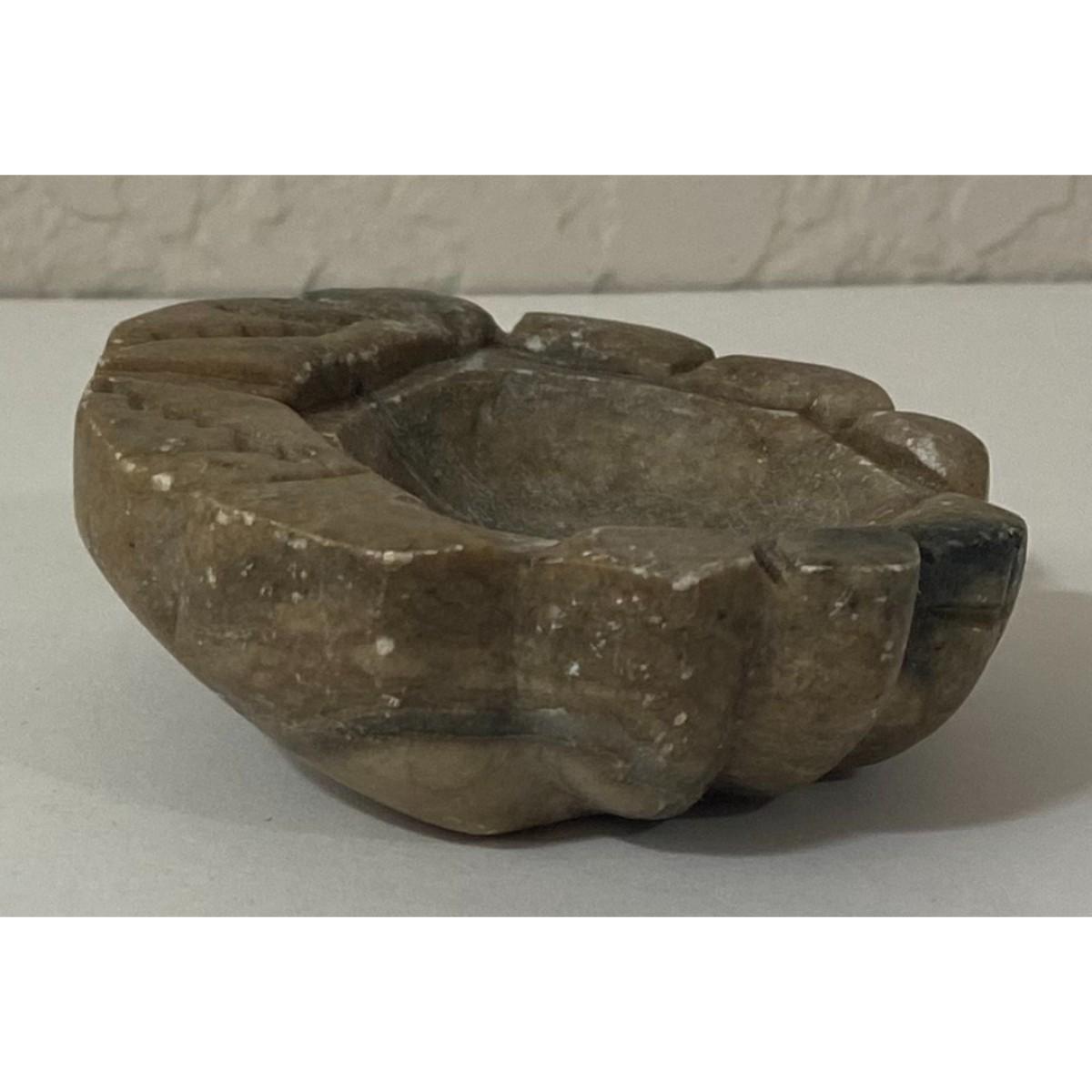You get one stone dish that is in good condition with minor surface wear. It stands approximately 1" tall at its tallest, is 3.25" wide at its widest, and 2 7/8" deep at its deepest. Please see all pictures. Thank you for looking. As a reminder, if this is a lot, we do not break up lots. Also, all items are prepacked, so each item is sent individually. Any item that qualifies for media mail and weighs over one pound will be shipped via media mail. Otherwise, the item will be shipped USPS ground advantage, or UPS ground. Shipping for this item is $8.00. Items ship within two days after payment is received. Item SKU is OTH3092.
