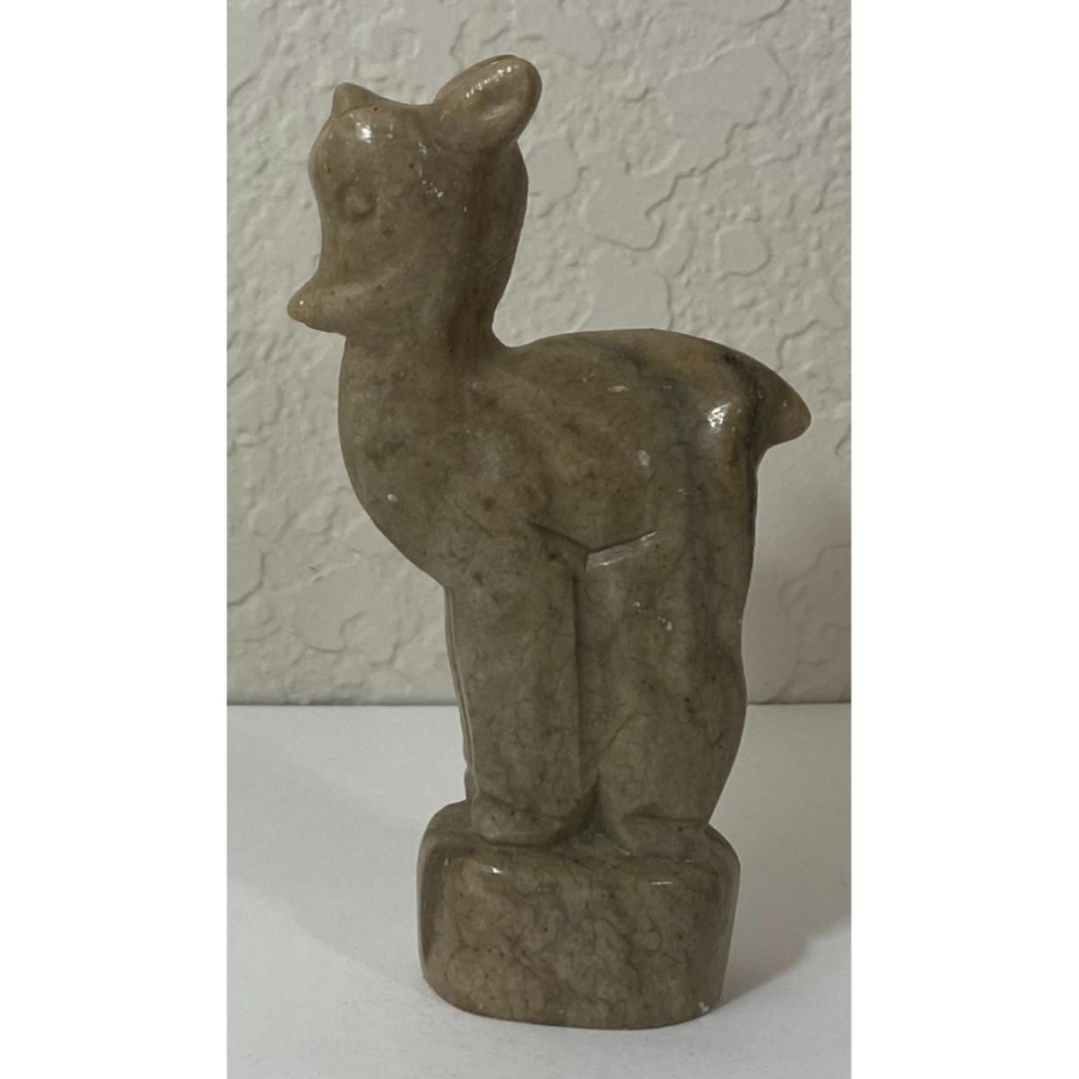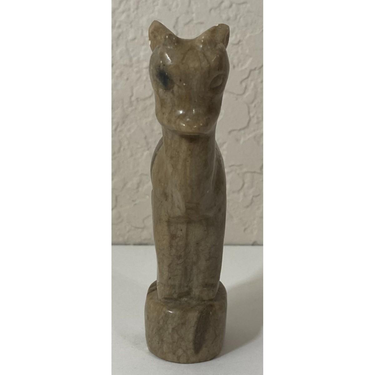 You get one stone dish that is in good condition with minor surface wear. It stands approximately 4 3/8" tall and is 1" wide at its widest. Its base is roughly 1.5" long by 1" wide. Please see all pictures. Thank you for looking. As a reminder, if this is a lot, we do not break up lots. Also, all items are prepacked, so each item is sent individually. Any item that qualifies for media mail and weighs over one pound will be shipped via media mail. Otherwise, the item will be shipped USPS ground advantage, or UPS ground. Shipping for this item is $8.00. Items ship within two days after payment is received. Item SKU is OTH3128.