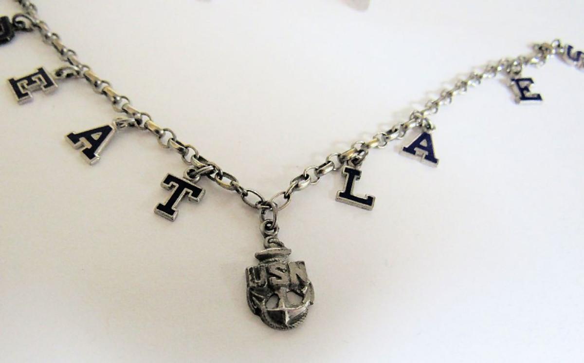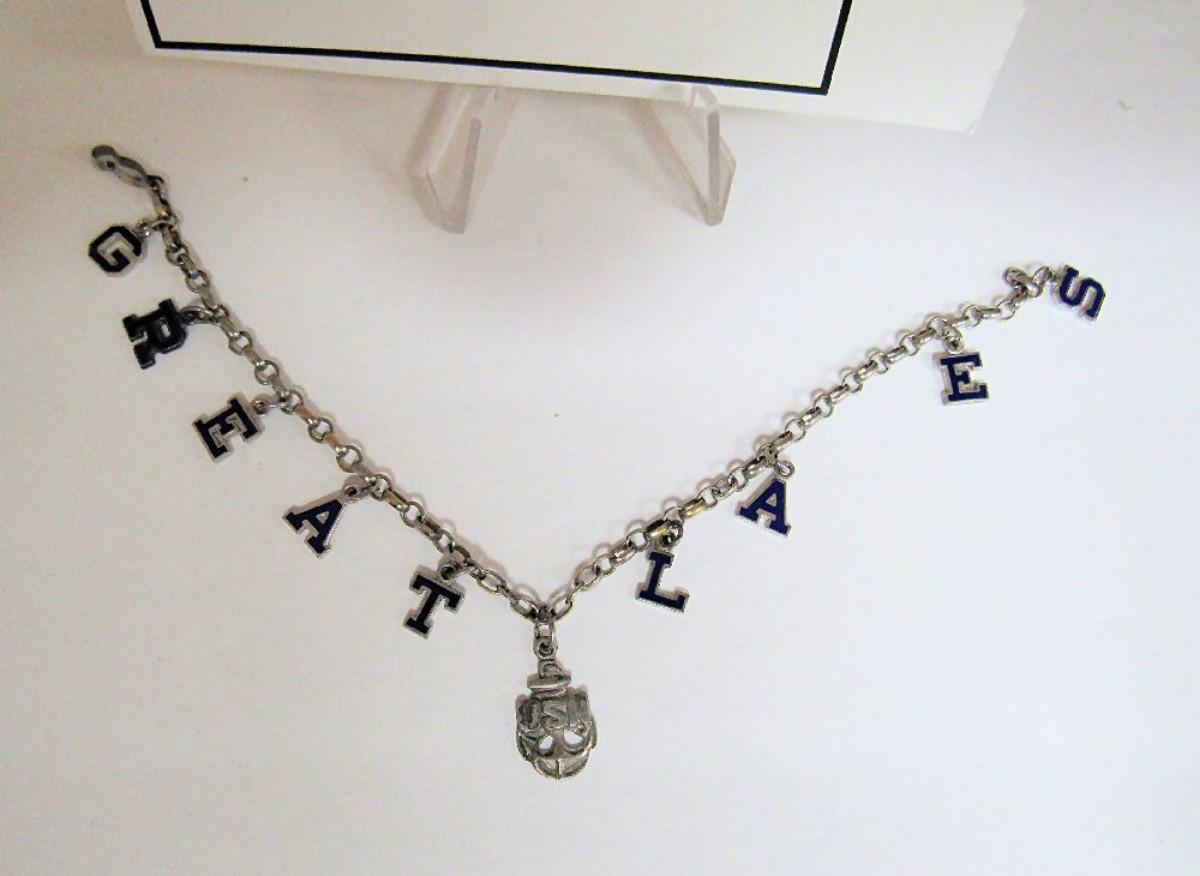 Vintage Great Lakes Charm Bracelet Gold Filled, USN Charm, Some Sterling Letter Charms
