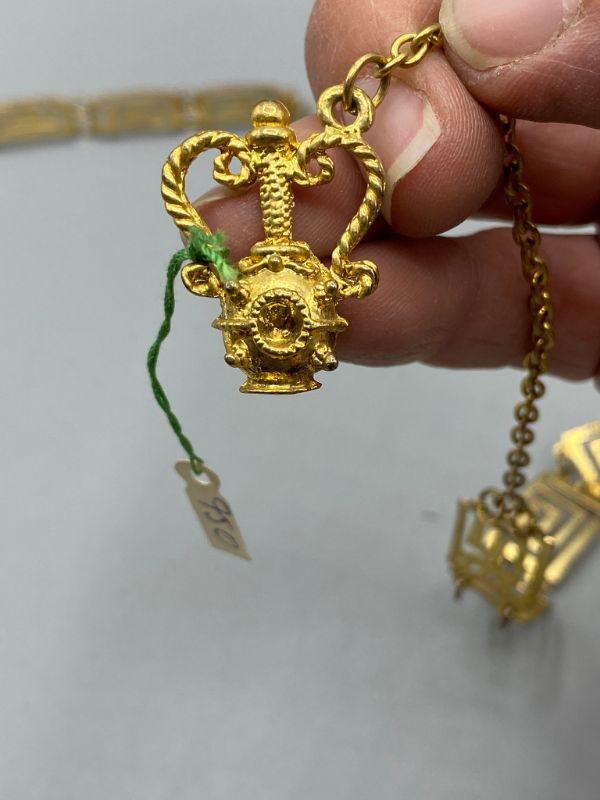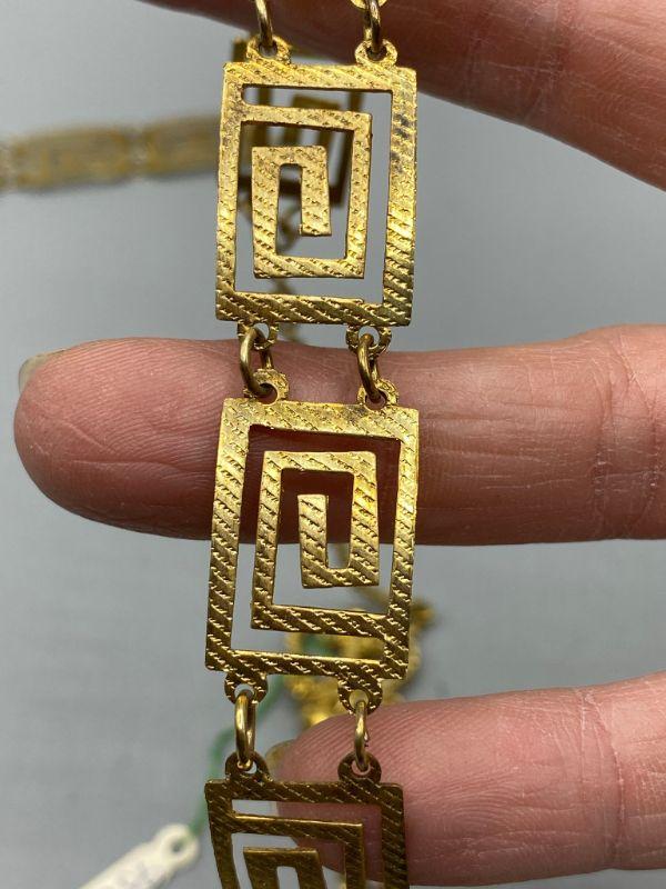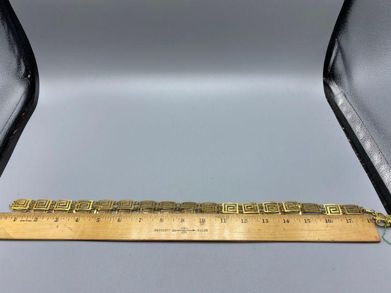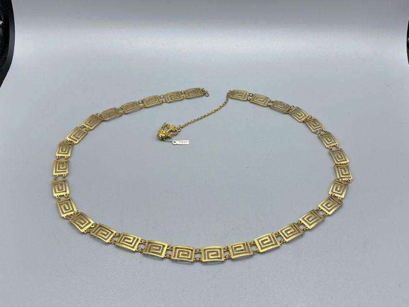 Vintage metal link belt. Greek key pattern. Adjustable size with hook and chain closure. Measures roughly 36".