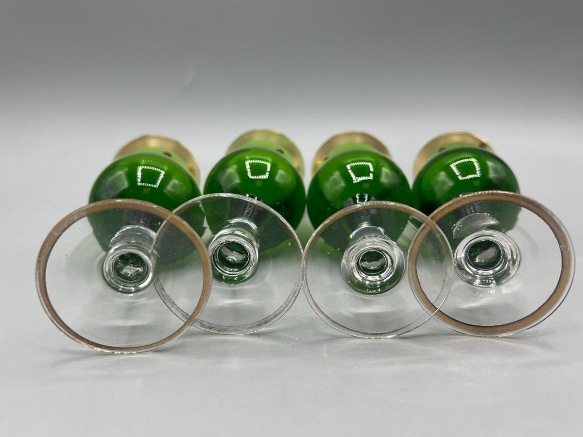 Vintage Green and Gold Drink Stemware Cordial Glasses
