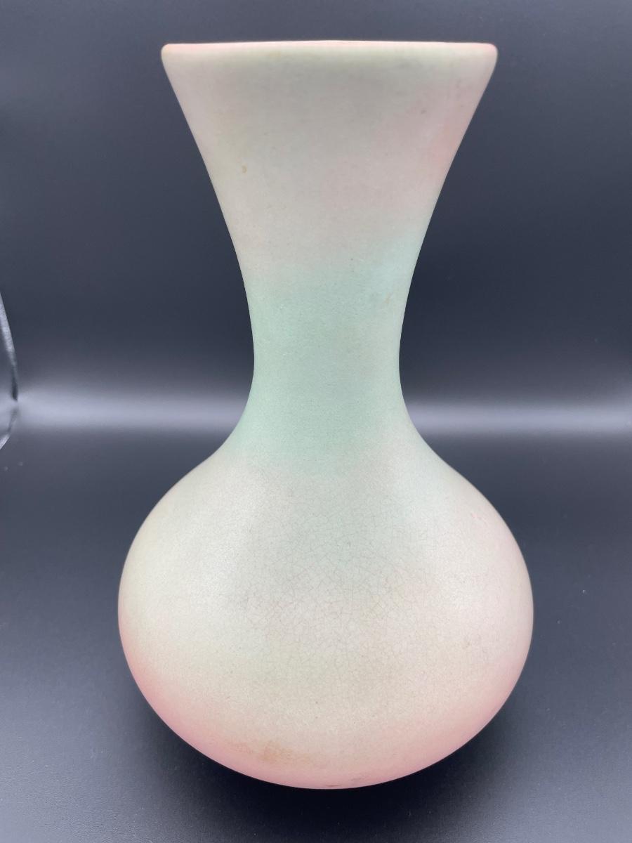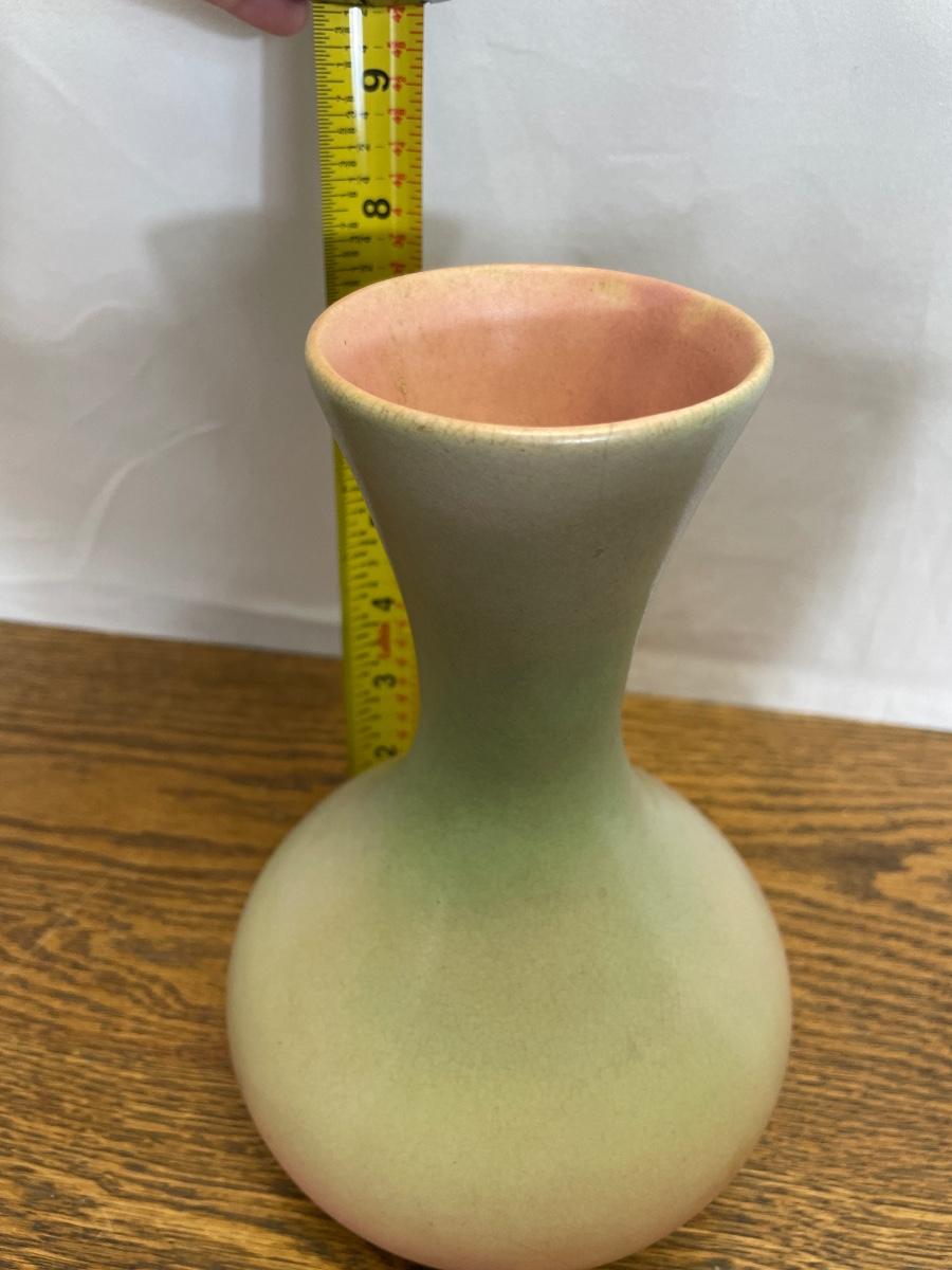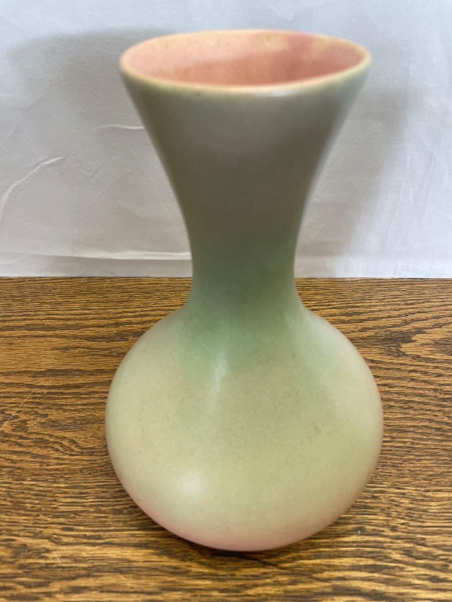 Vintage (possible Red Wing) green and pink vase