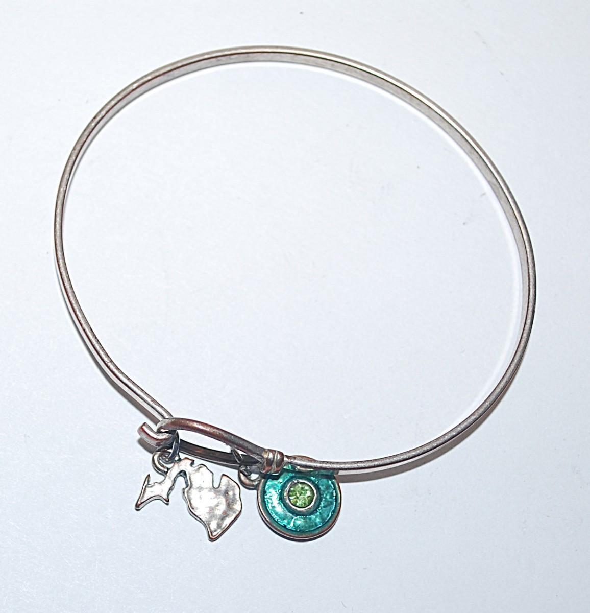 VINTAGE Green & Aquamarine Enameled CHARM -Style BRACELET (2¼" Opening) with Curved Hook Closure