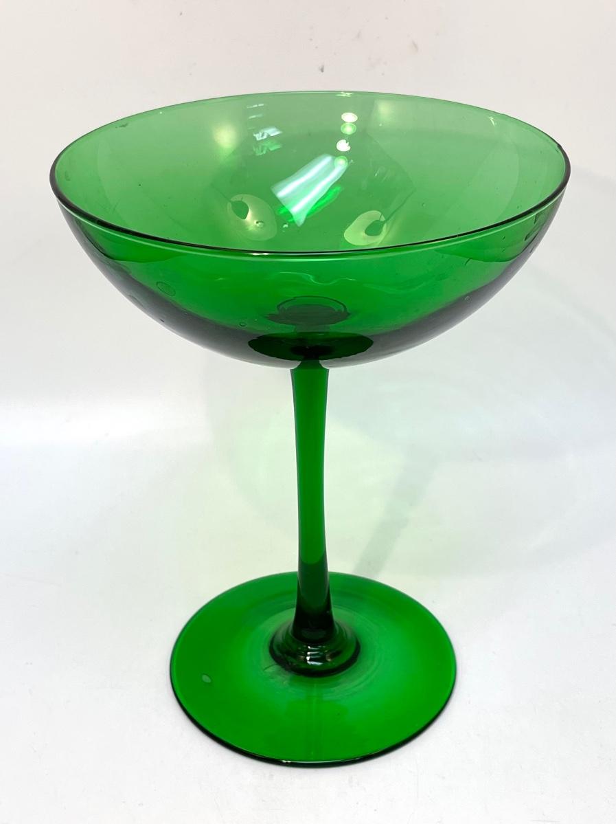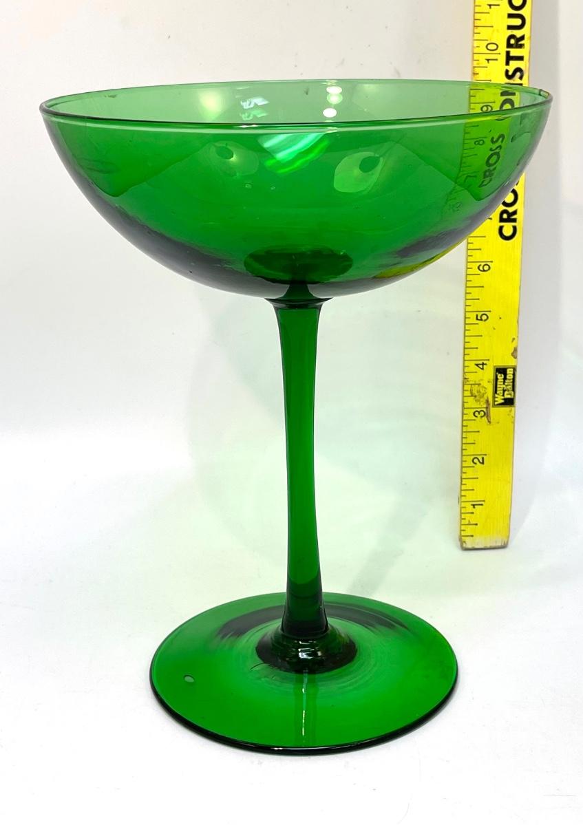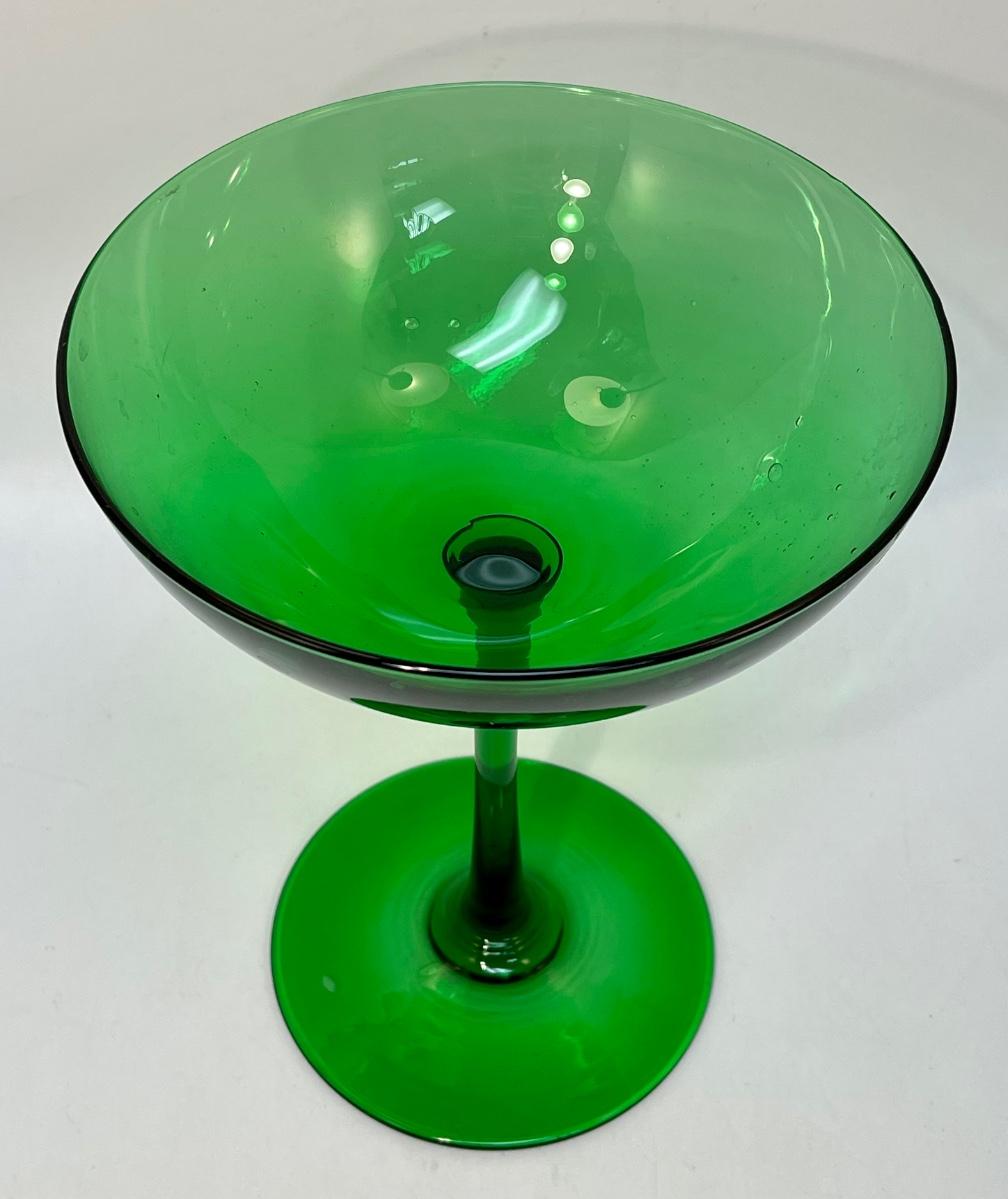 Vintage green art glass compote In good condition. There are bubbles in the glass that are part of the manufacturing process. Photos for details.
