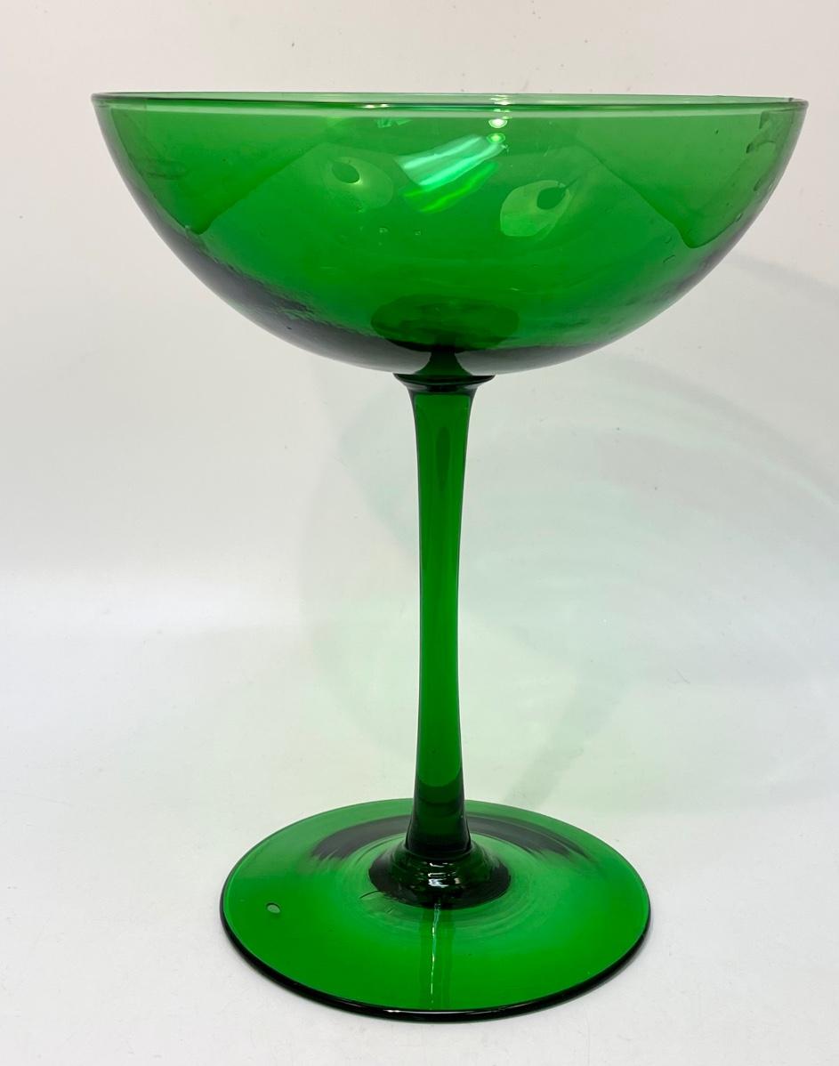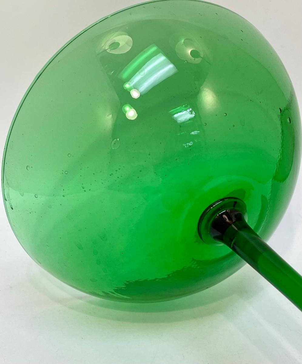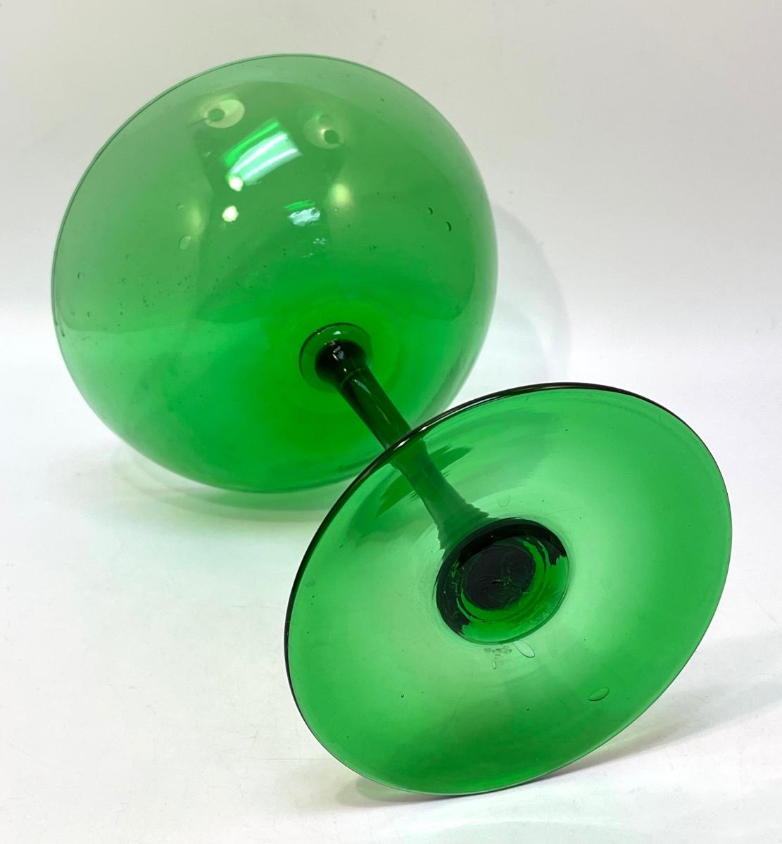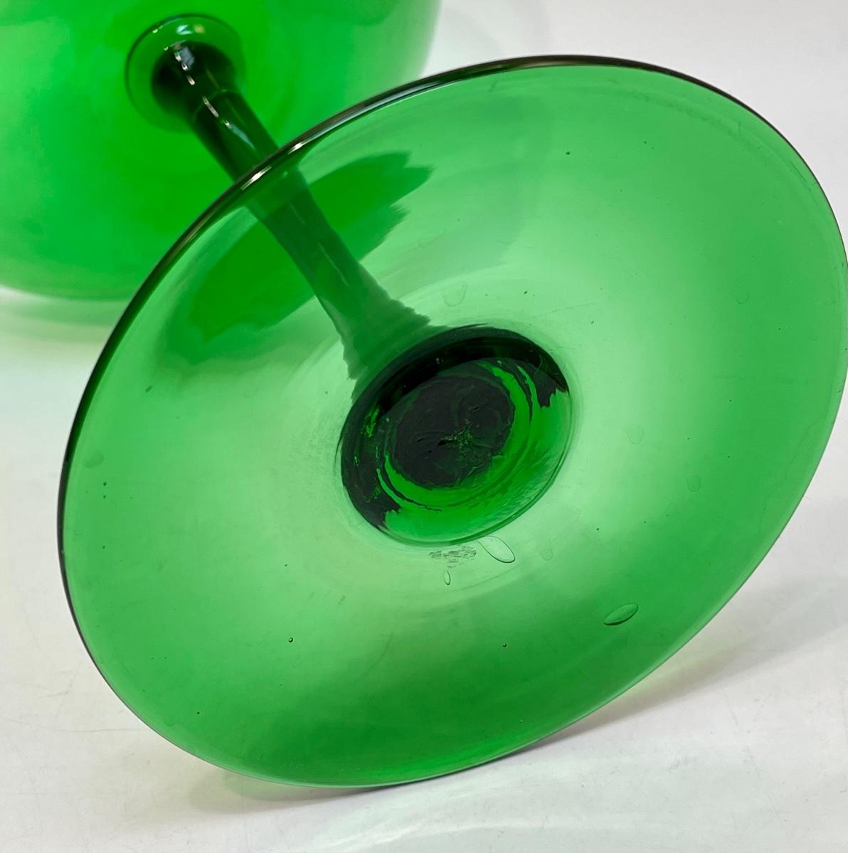 Vintage Mid-Century Modern Emerald Green Hand-blown Art Glass Compote 9"