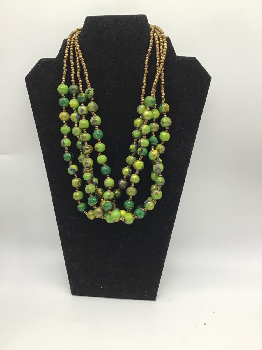 Vintage green beaded bulky necklace