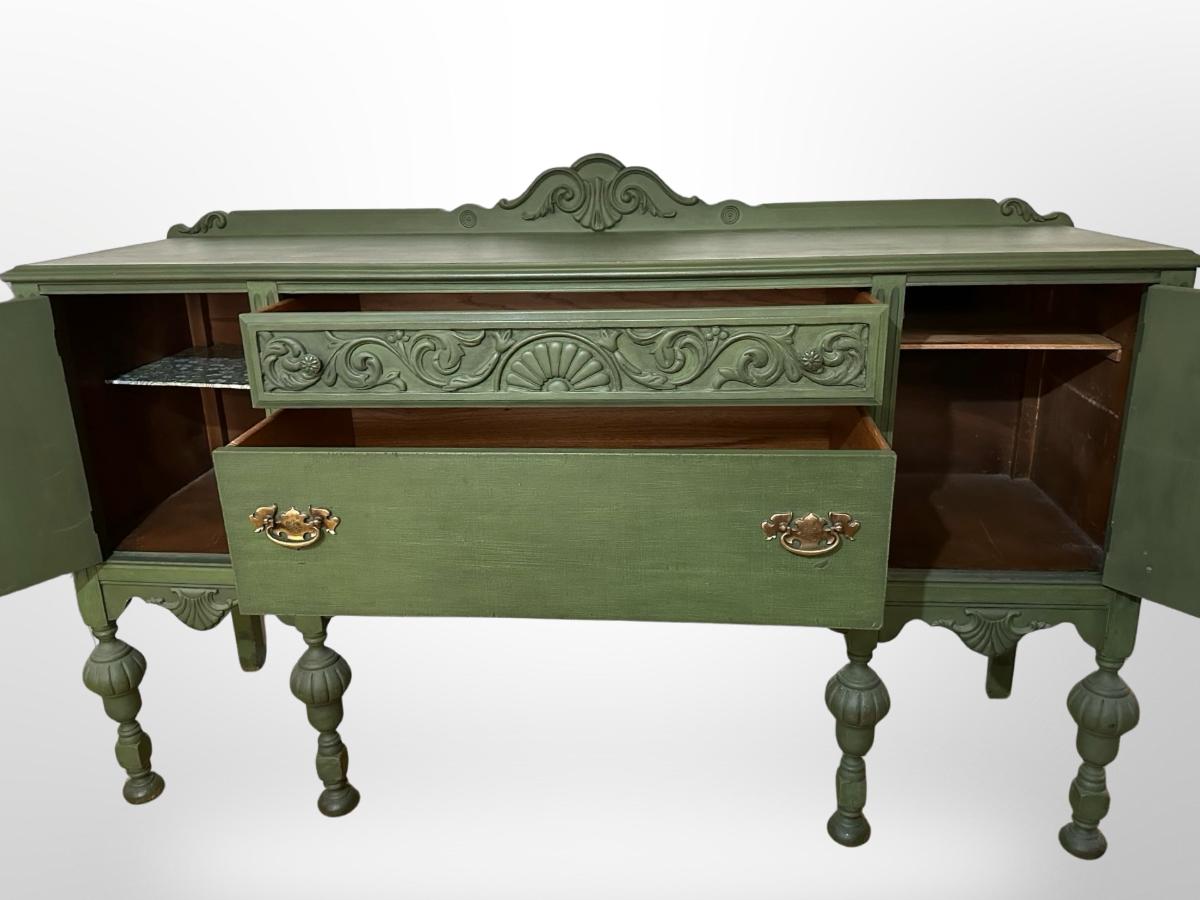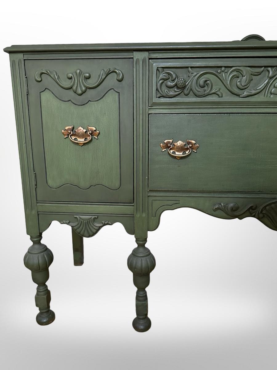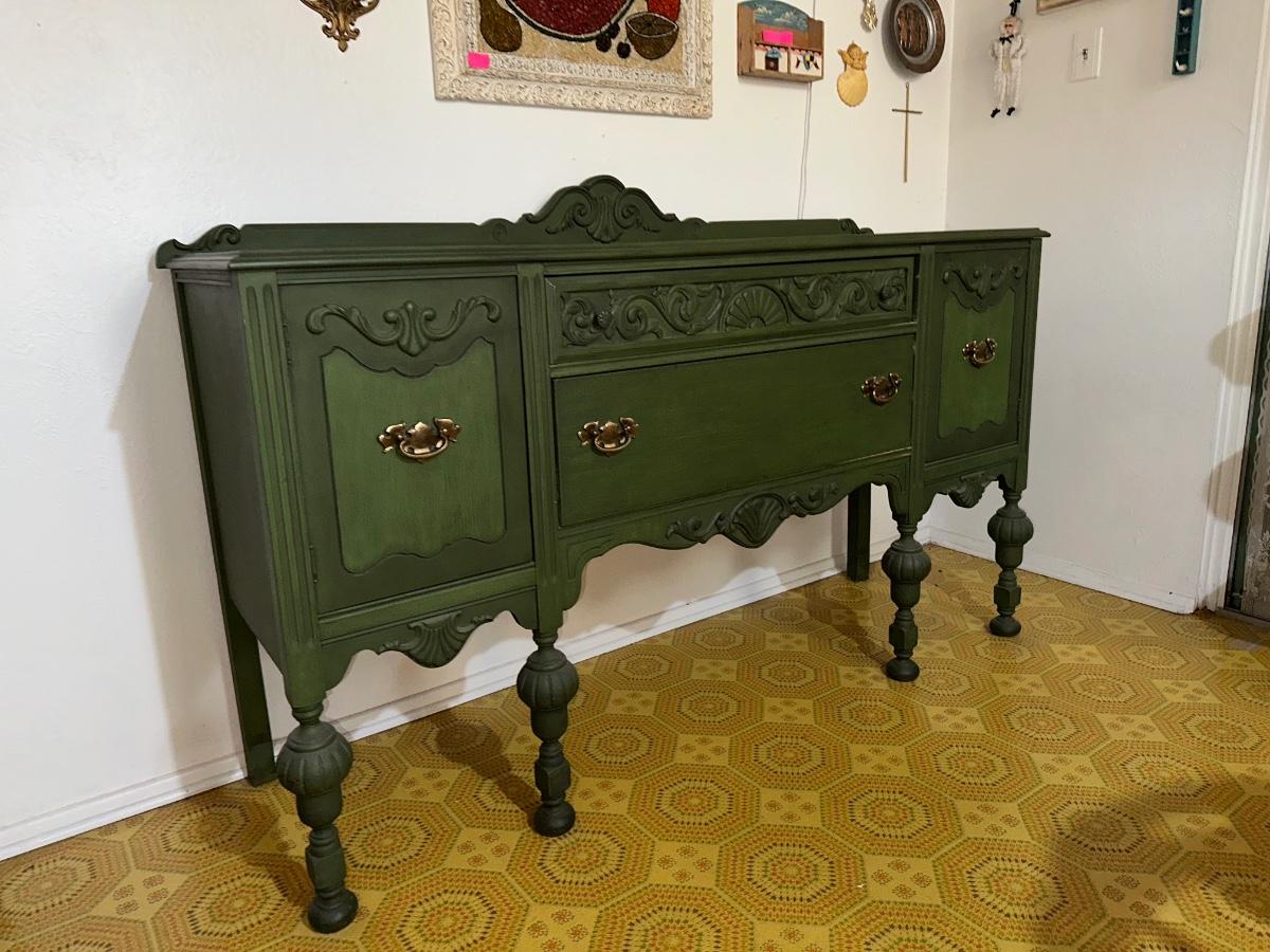 Beautiful green buffet in excellent condition, 37” H x 20” D x 65” W