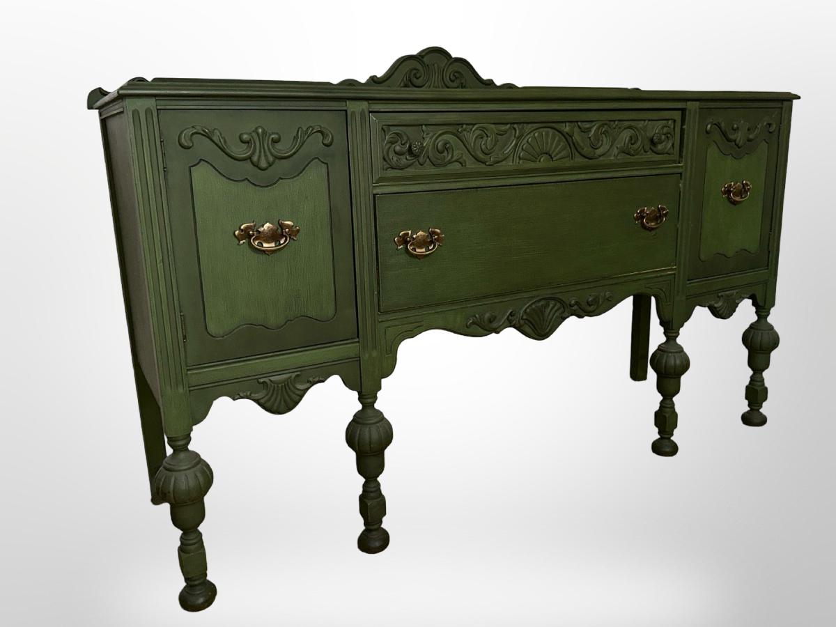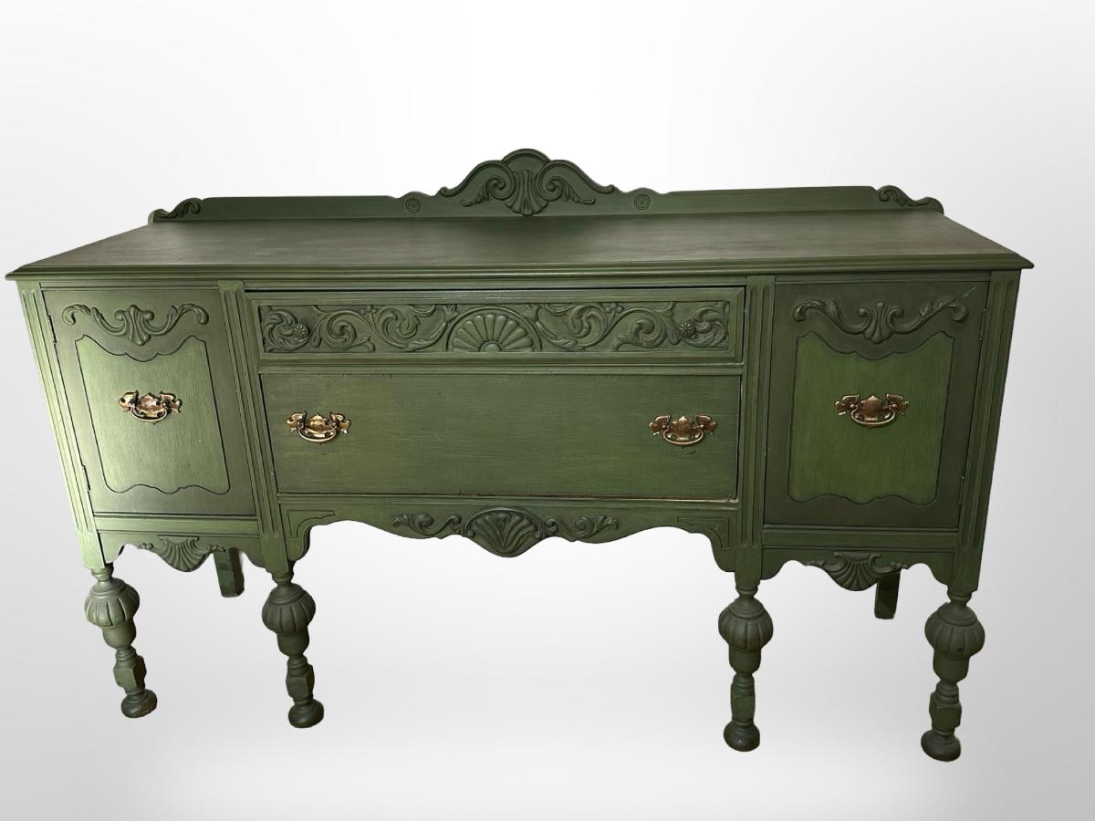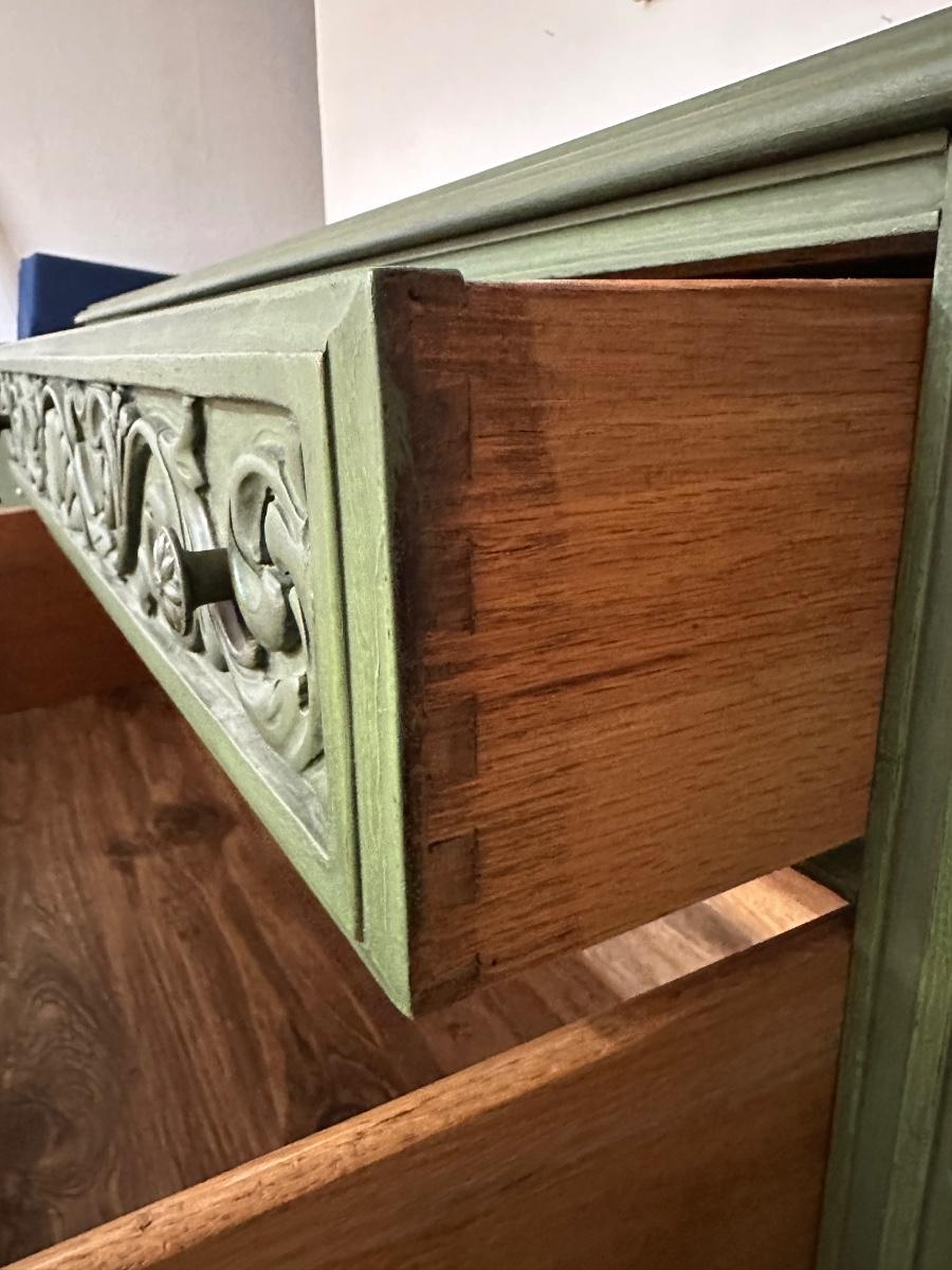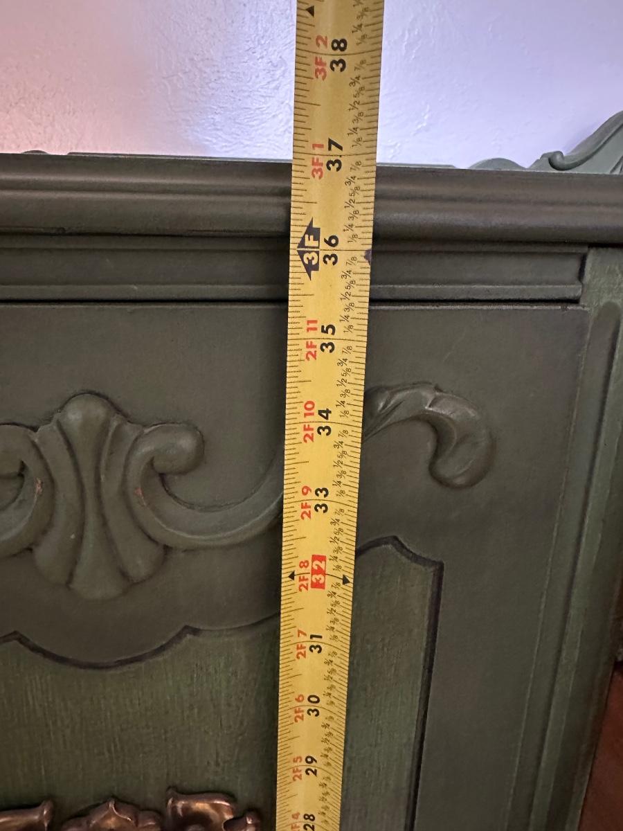 Beautiful green buffet in excellent condition, 37” H x 20” D x 65” W