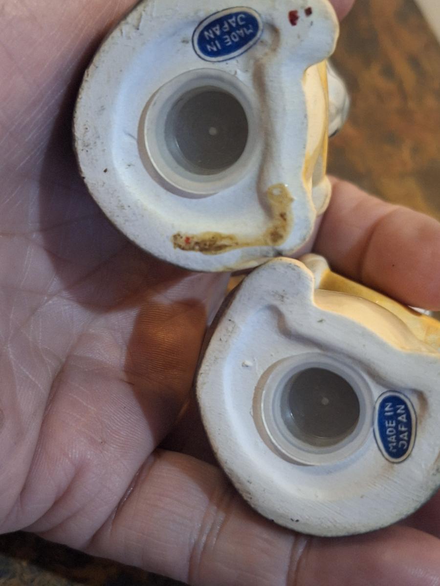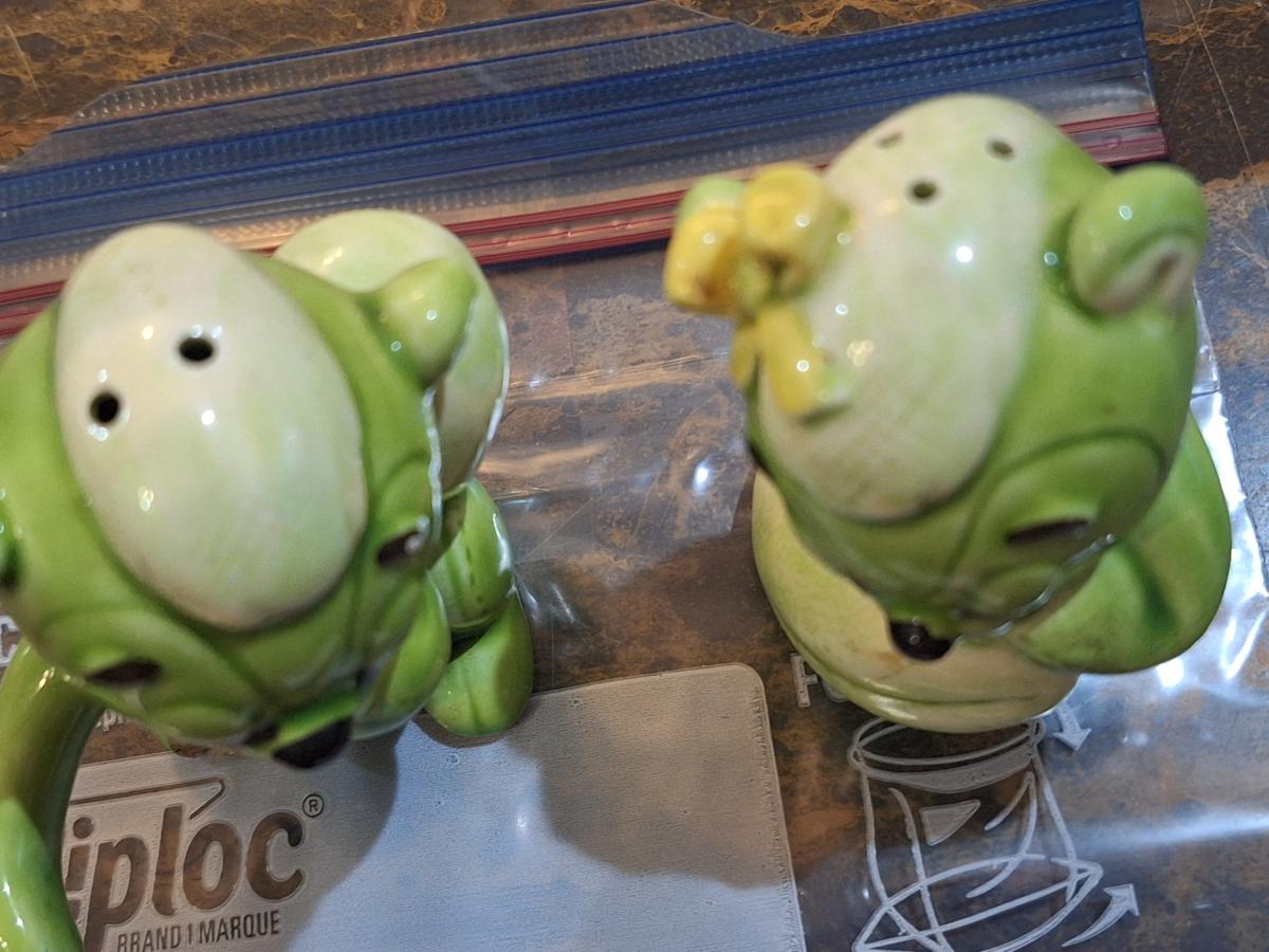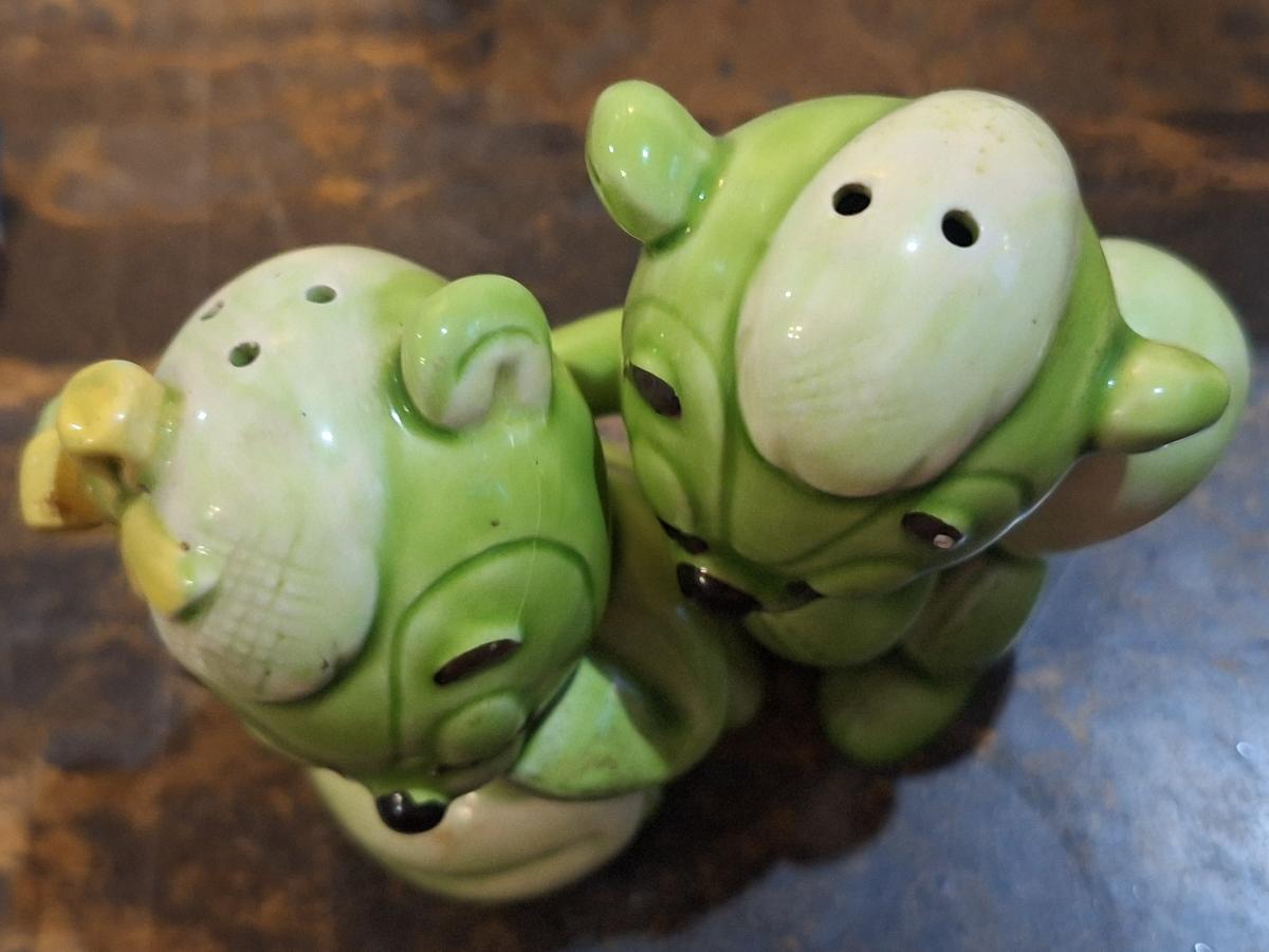 vintage green ceramic Van Tellingen bear salt and pepper shakers.