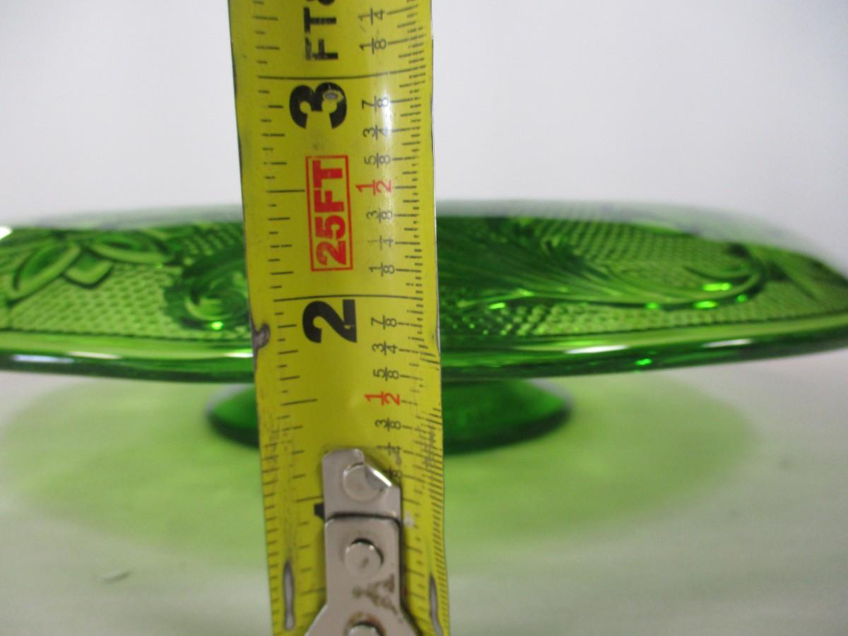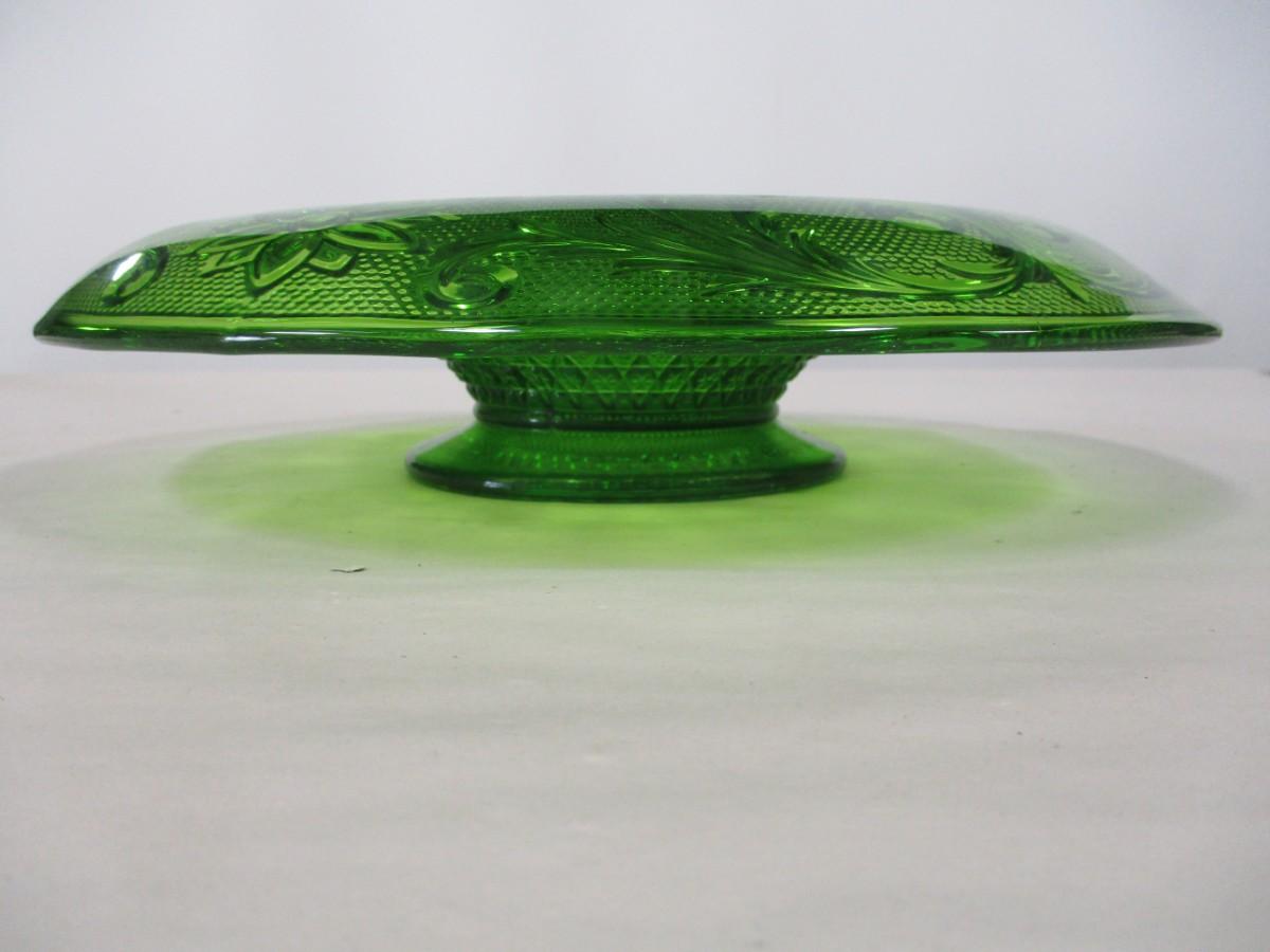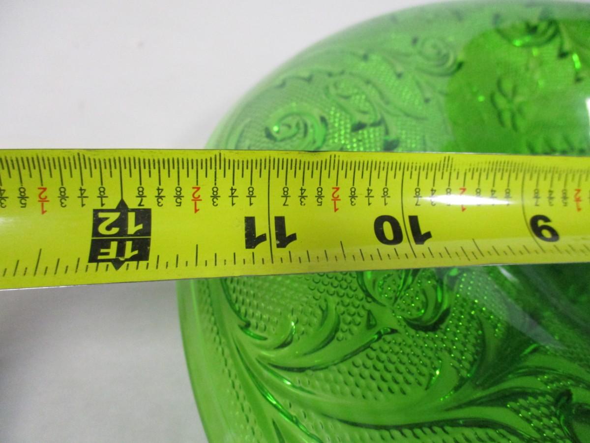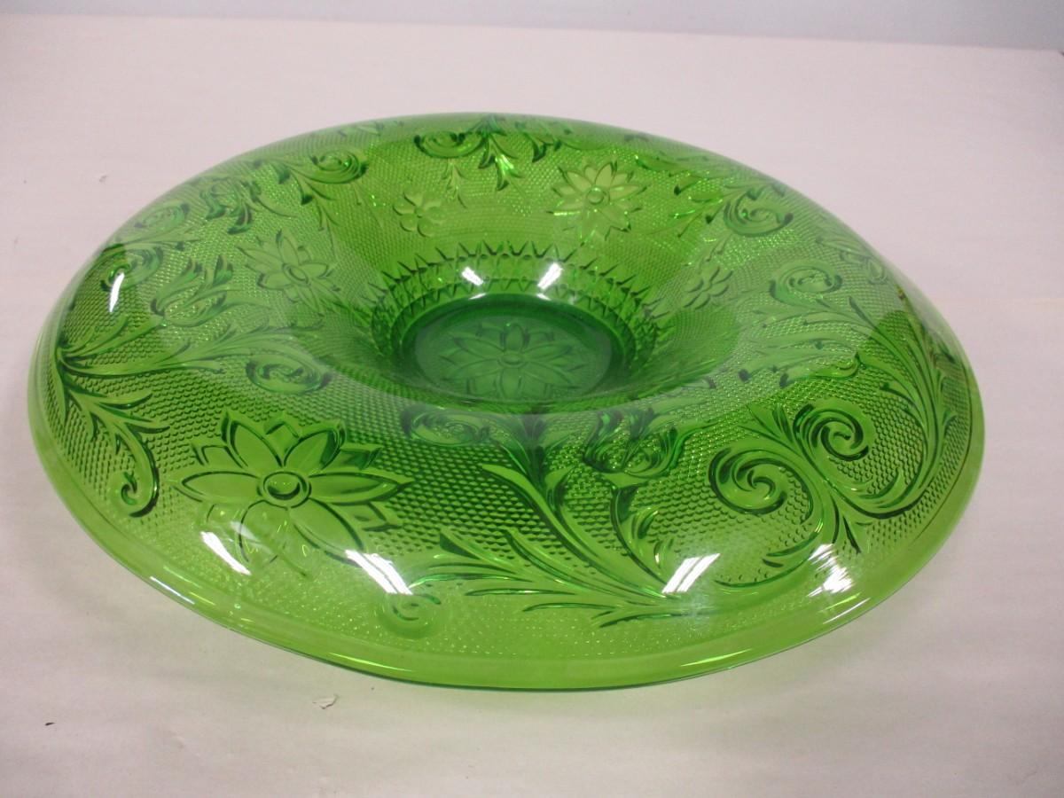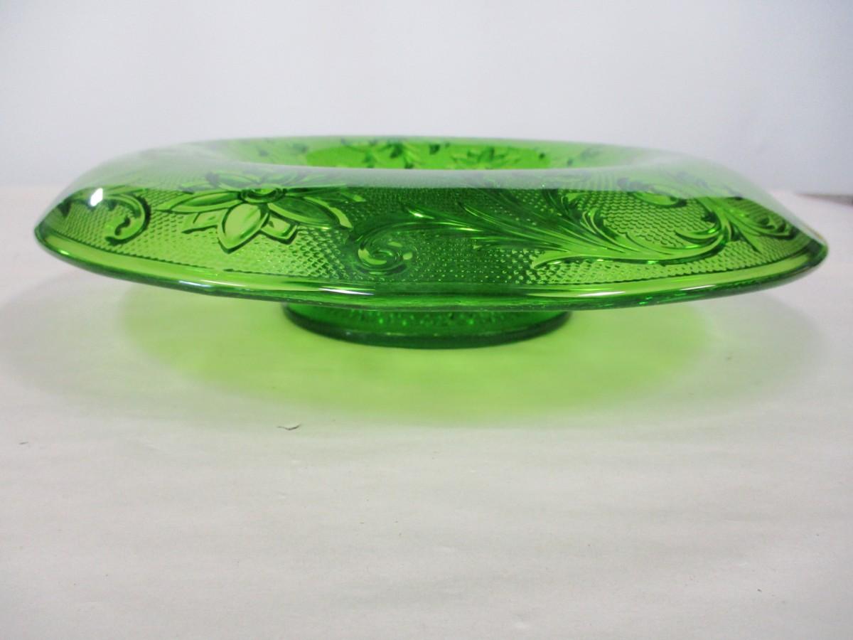 Vintage Green Depression Glass Console Bowl Rolled Edge Floral Pattern