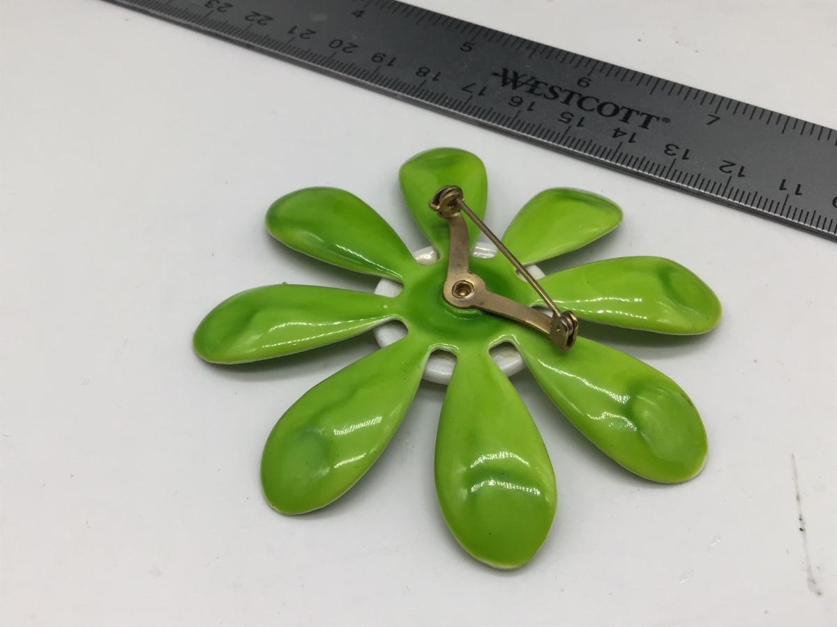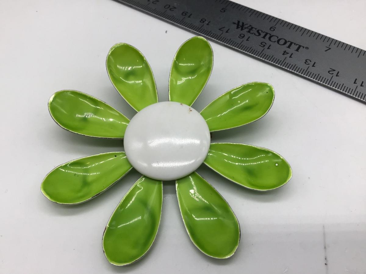 Vintage Green Dimpled Petal Enamel Metal Flower Pin Brooch