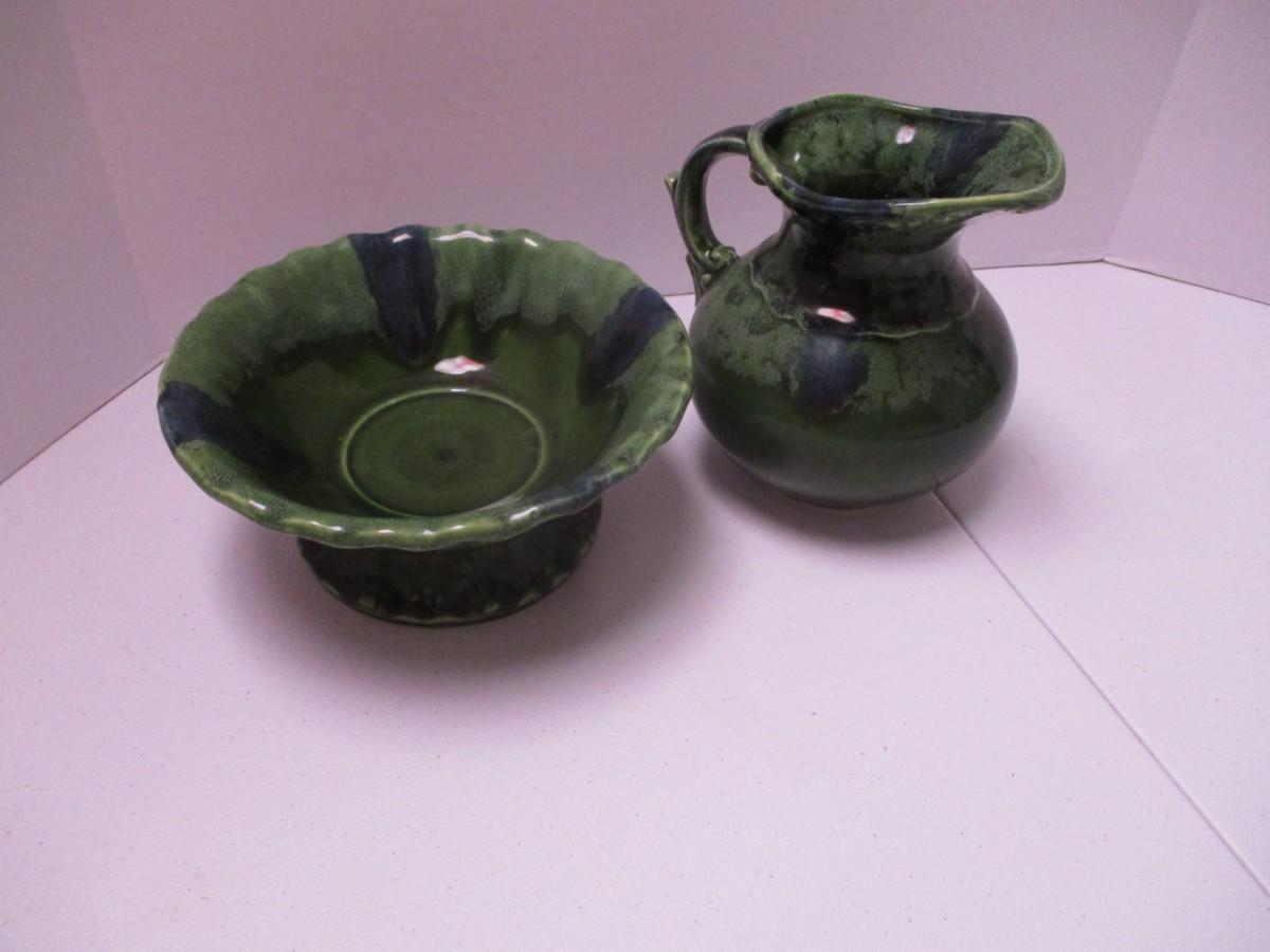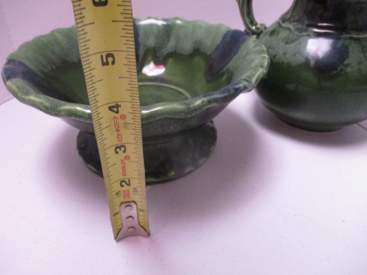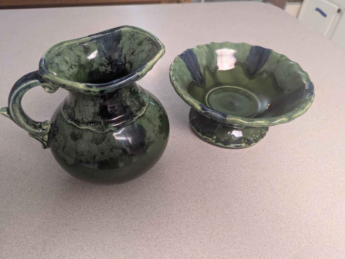 Vintage Green Drip Glazed Candy Dish & Pitcher (K)