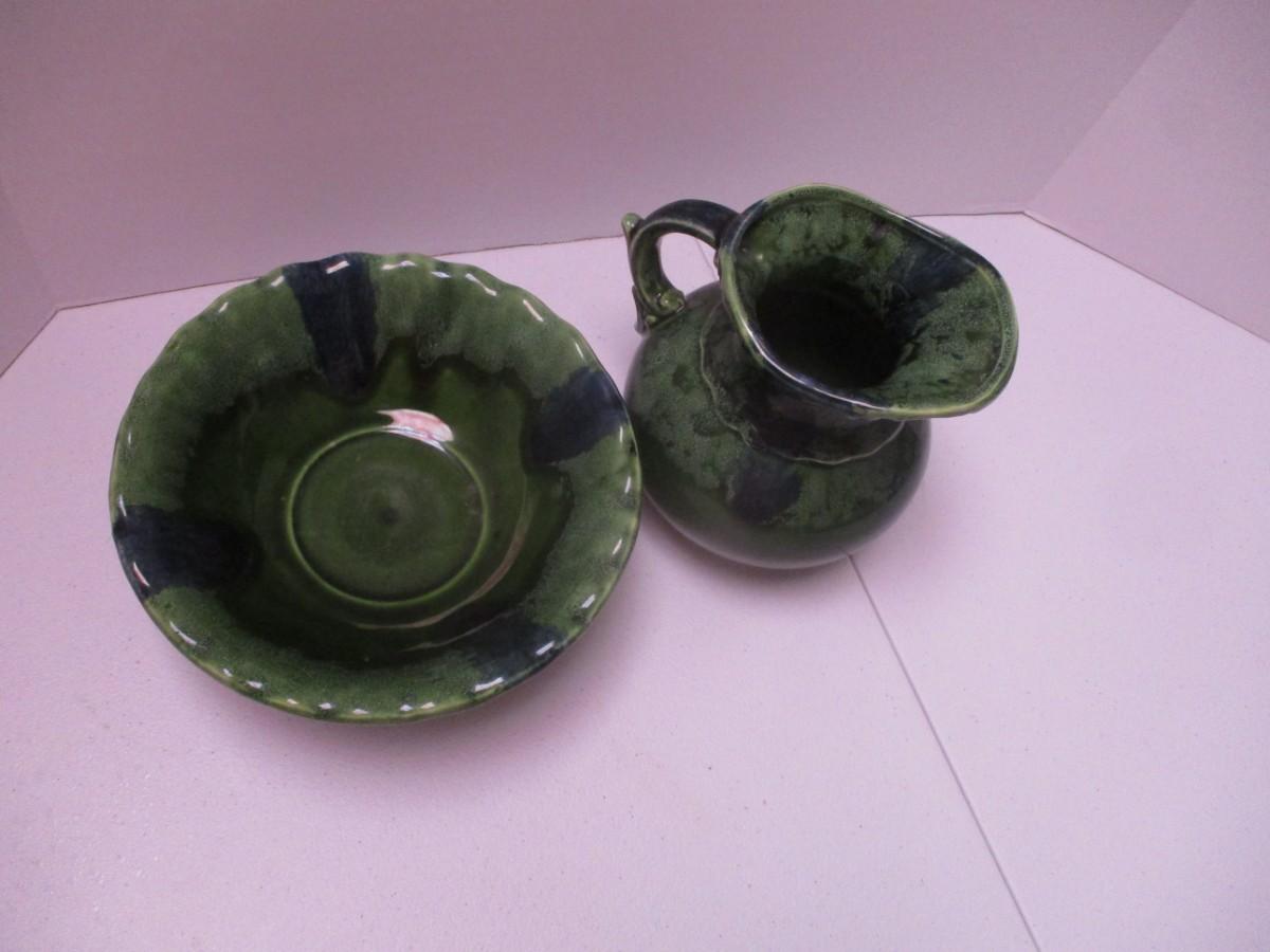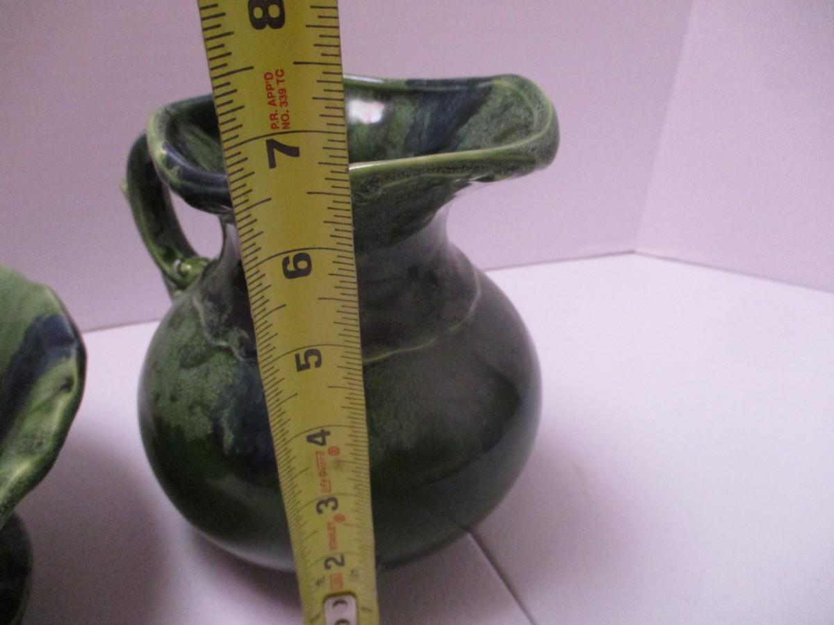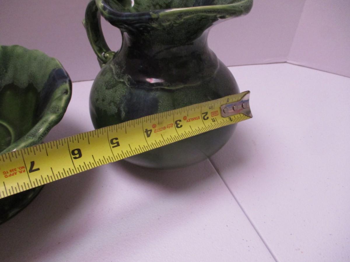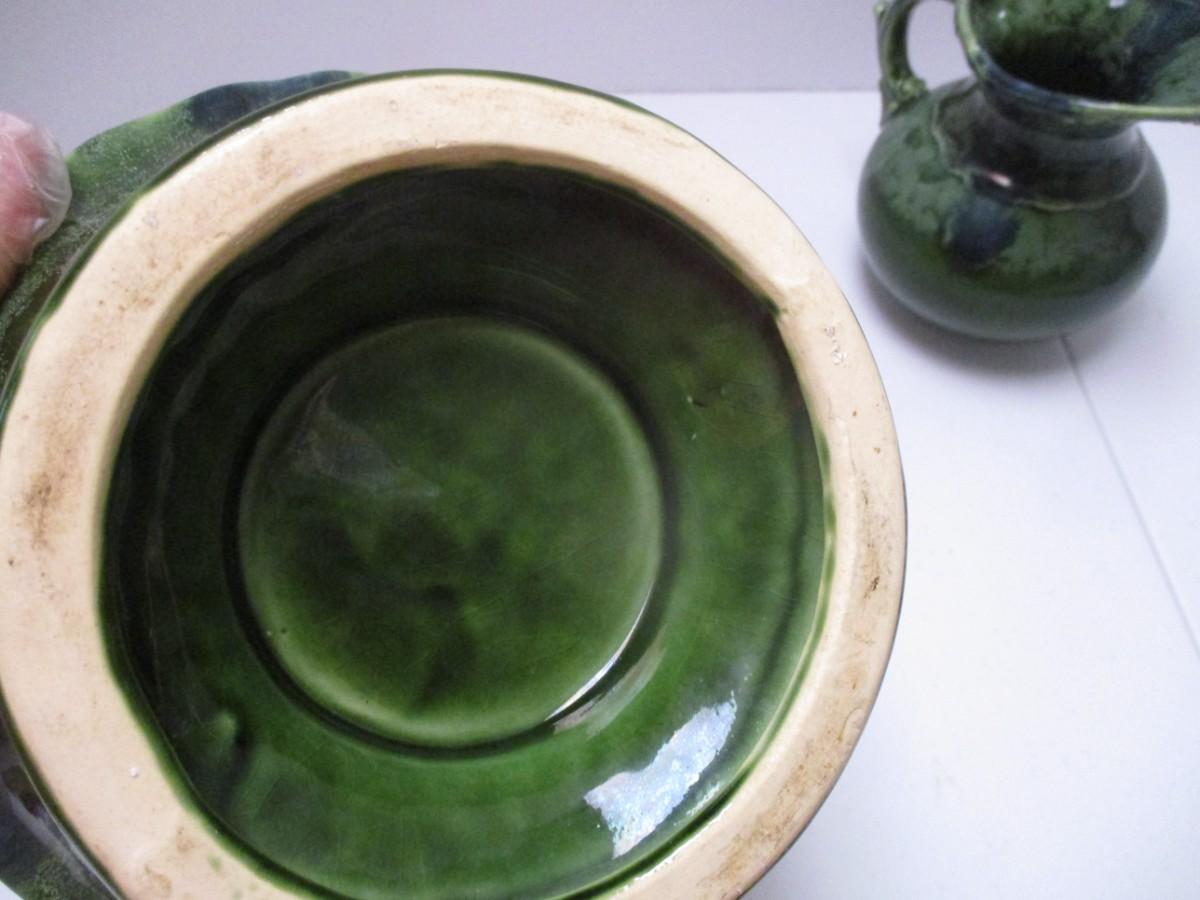 Vintage Green Drip Glazed Candy Dish & Pitcher (K)