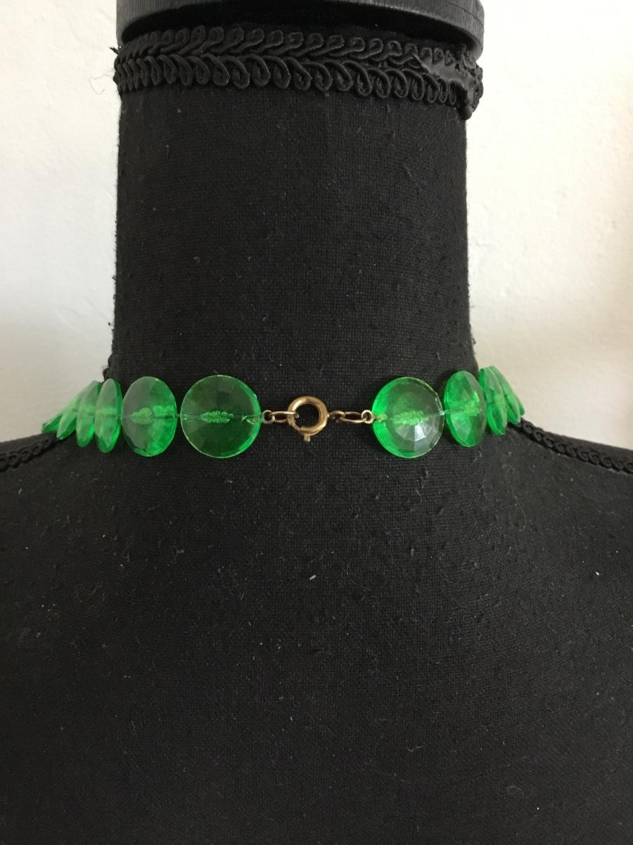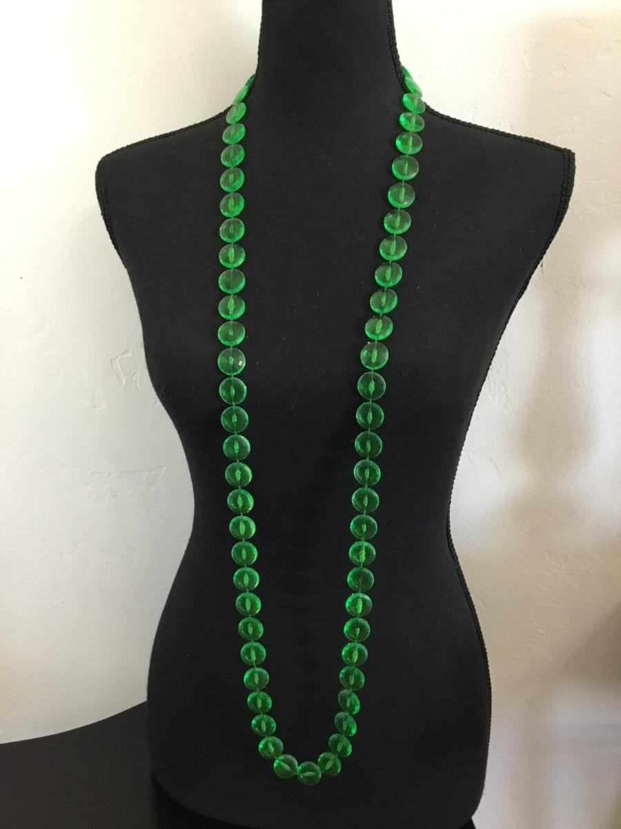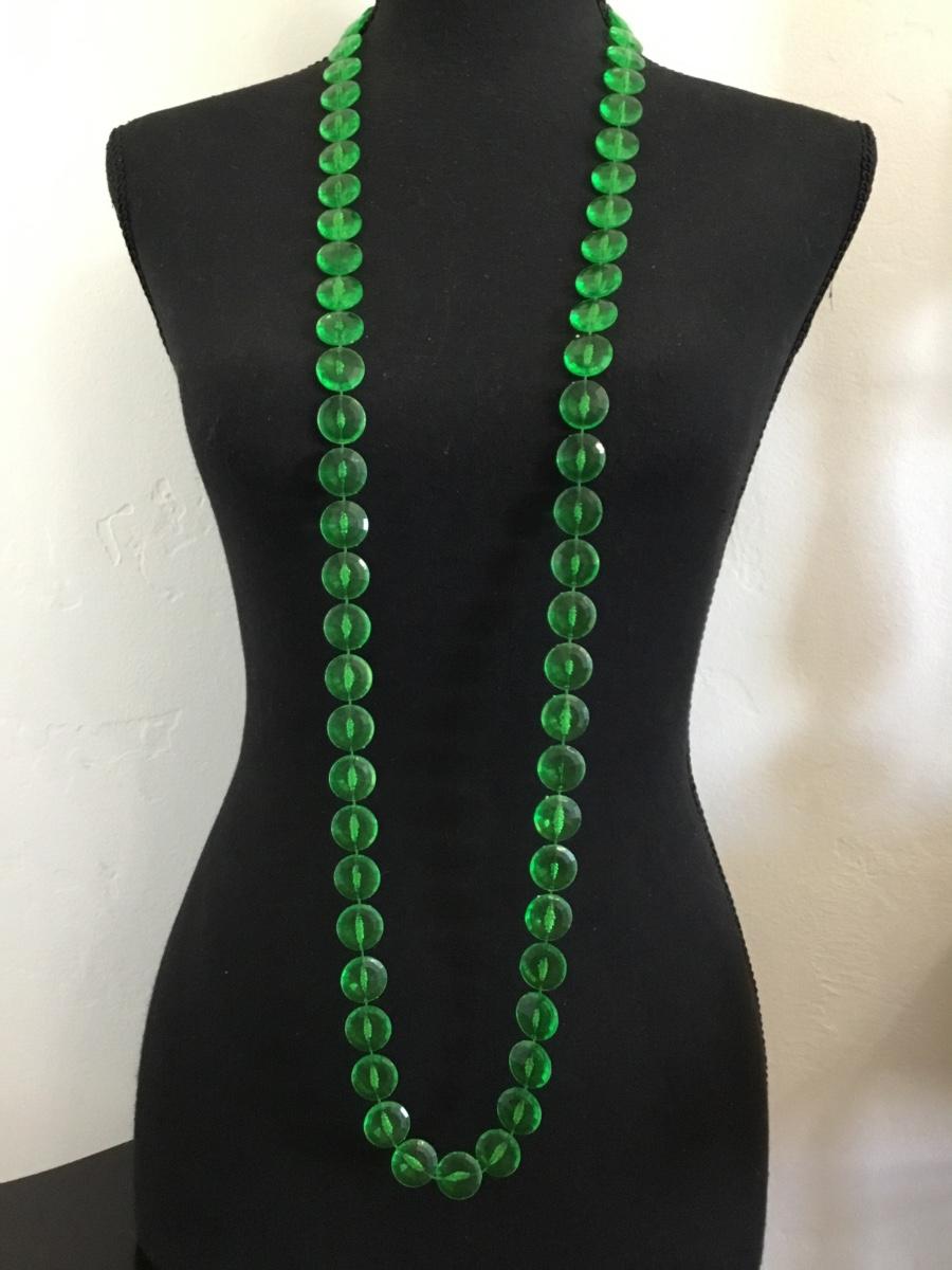 Vintage, green faux, glass bead, circular bead, long statement, necklace