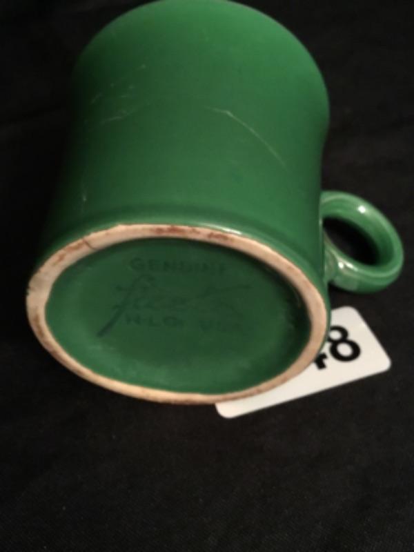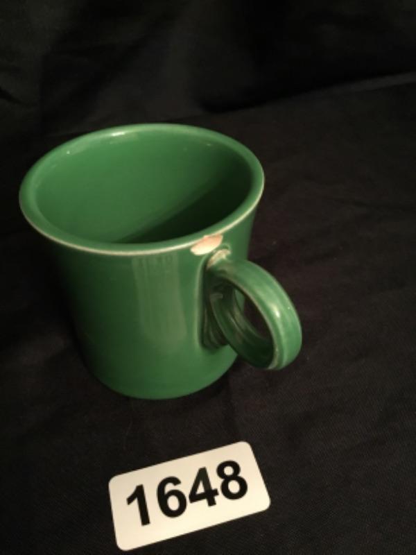 Vintage green fiesta ware mug has chip and crack see pictures Lot 1648