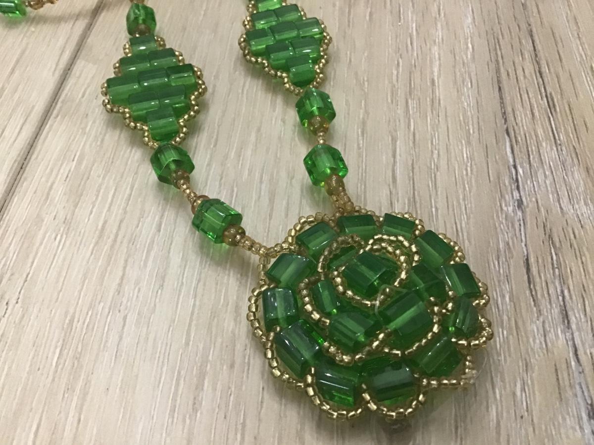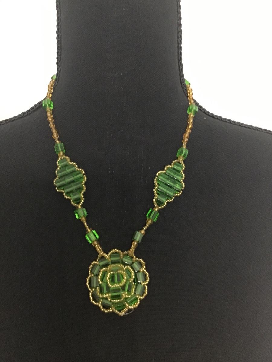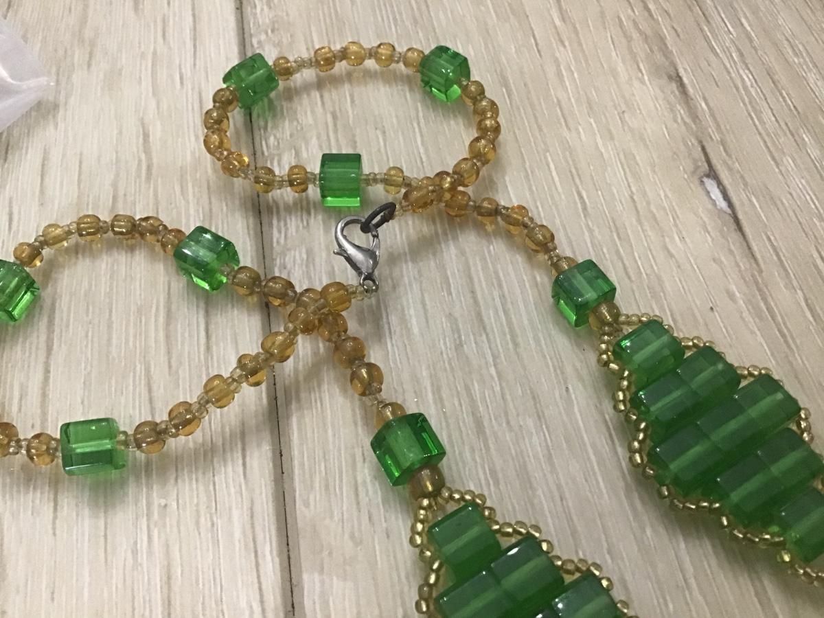 Vintage Green Glass Beaded Necklace